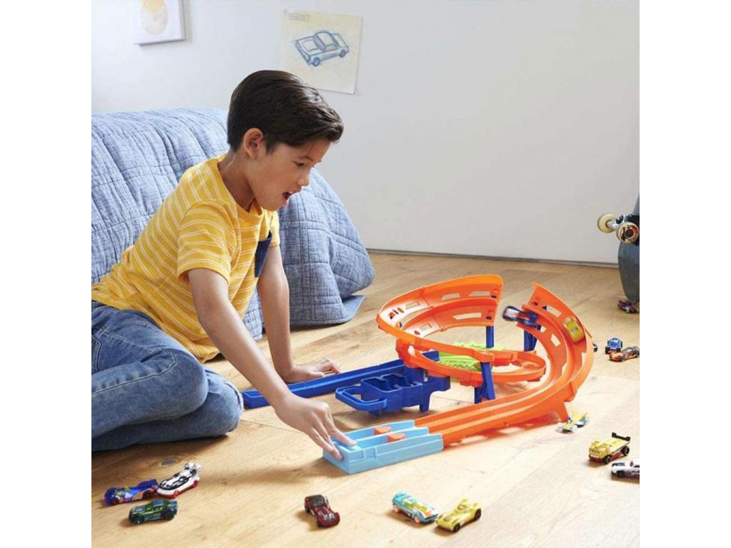 Indítsd be a motorokat a Hot Wheels: Duplasávos versenypálya készlettel, mely két vadonatúj Hot Wheels versenyautót is tartalmaz, hogy azonnal startolhass a száguldás világában! A Mattel által tervezett ez a pálya több mint 57 cm-es méretben hozza el neked a gravitációs trükköket és gyors kanyarokat, biztosítva a folyamatos akciót és izgalmat. A két párhuzamos sáv lehetővé teszi a gyerekeknek, hogy egymás ellen versenyezzenek, növelve ezzel a játék izgalmát és versenyszellemét. A pálya összeszerelése egyszerű, így a szórakozás gyorsan kezdetét veheti. Készülj fel a versenyre és nézd, ki jut el elsőként a célba! Ajánlott 3 éves kortól minden kis sebességmániásnak.