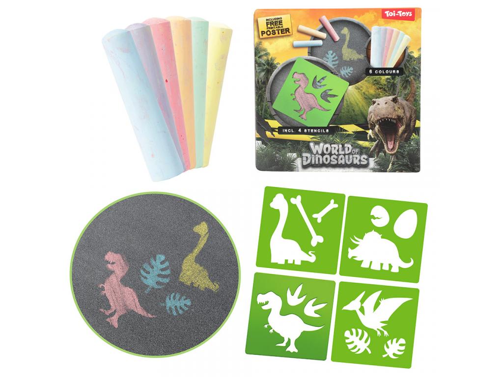 World of Dinosaur: Aszfaltkréta szett dinoszauruszos sablonnal