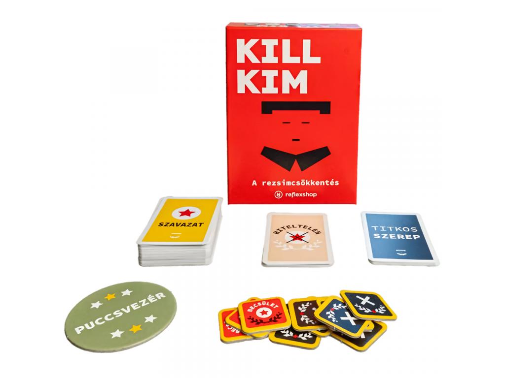 A Kill Kim társasjáték egy izgalmas, rejtett szerepes stratégiai játék, amelyben a játékosok Kim belső köréhez tartoznak, és titkos összeesküvést szőnek a rezsim megbuktatására vagy éppen hűségesen védelmezik vezetőjüket. A játék során titkos szerepeket kaptok, amelyek alapján egy-egy csapathoz csatlakoztok, és igyekeztek elérni csapatotok célját, mindezt úgy, hogy a többi játékos ne leplezzen le.
