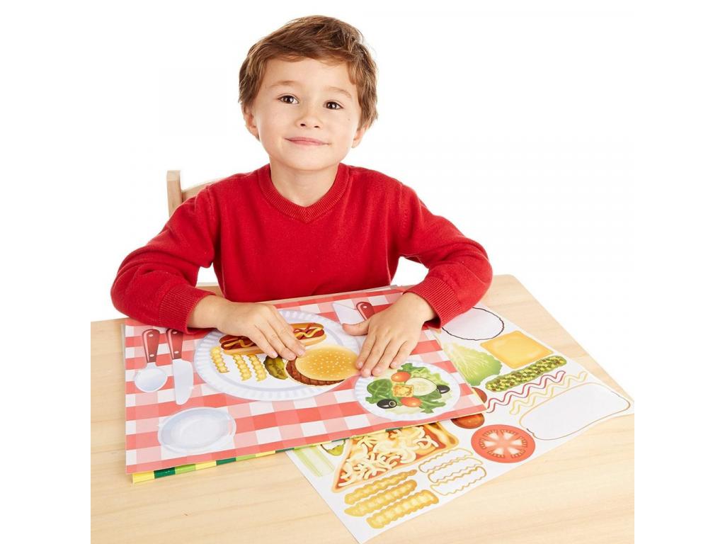 A Melissa & Doug Újrahasználható matrica készlet - Ételkészítés fantasztikus lehetőséget nyújt a gyerekeknek, hogy saját étkezéseket alkossanak meg, miközben játékos formában tanulnak az ételekről és fejlesztik kreativitásukat. Ez a színes matrica készlet 225 újrahasználható matricát tartalmaz, amellyel különböző típusú ételeket lehet összeállítani legyen szó reggeliről, ebédről, vacsoráról vagy akár desszertekről.