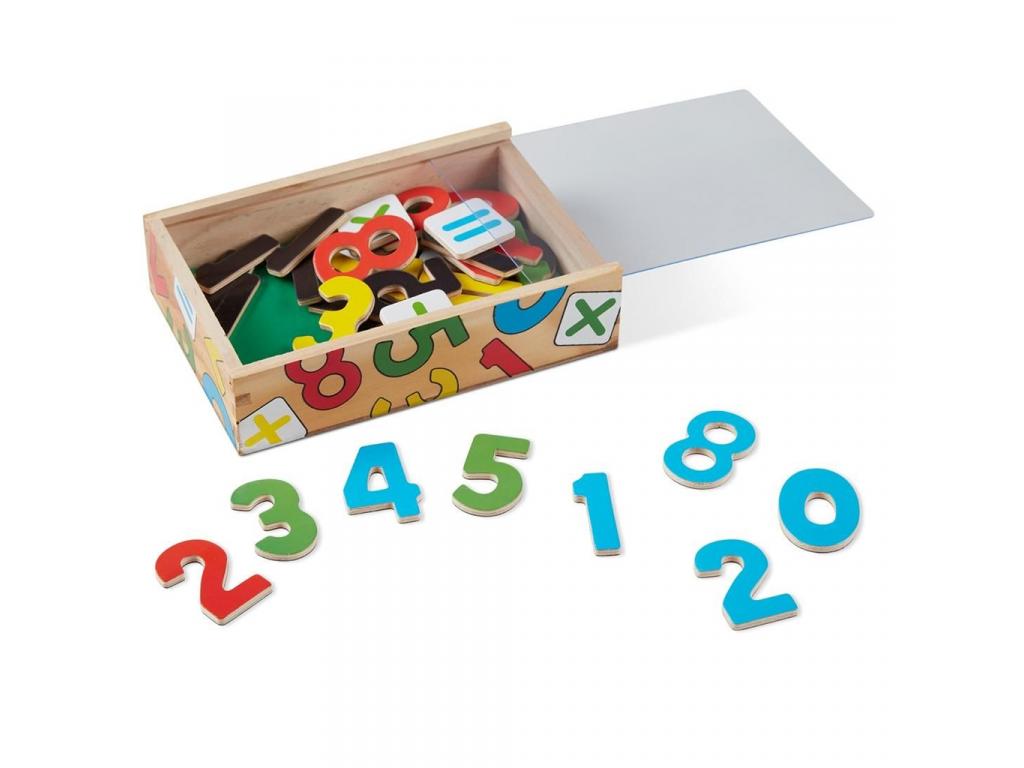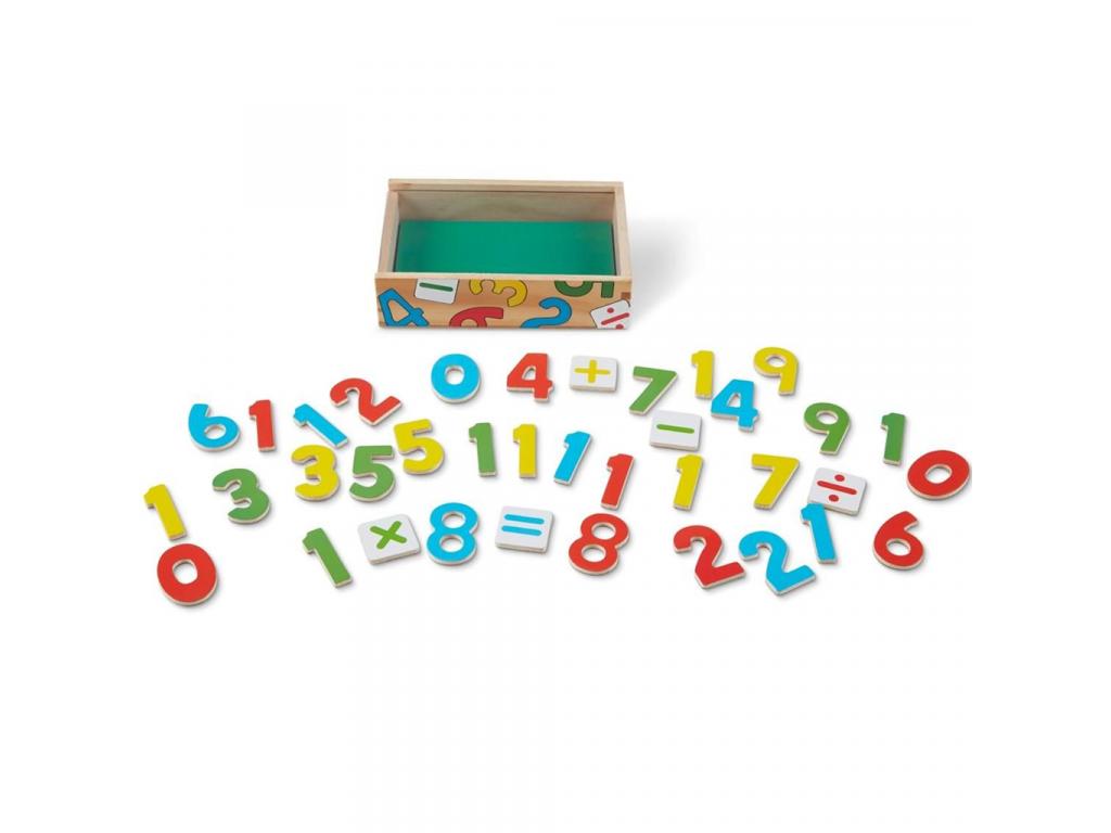 A Melissa & Doug mágneses fa számok készségfejlesztő játékszett kiváló választás, ha szeretnéd gyermekedet játékosan bevezetni a számok világába. Ez az egyszerű, de nagyszerű készlet 37 darab színes mágneses számot és matematikai jelet tartalmaz, melyekkel a gyerekek szórakoztató formában tanulhatják meg az alapvető számtani műveleteket, mint az összeadás, kivonás, szorzás és osztás. A készlet tartós fából készült, élénk színű, könnyen megfogható számjegyeket tartalmaz, melyek mágneses hátlapjuknak köszönhetően könnyedén felhelyezhetők hűtőre, mágneses táblára vagy bármilyen mágneses felületre.