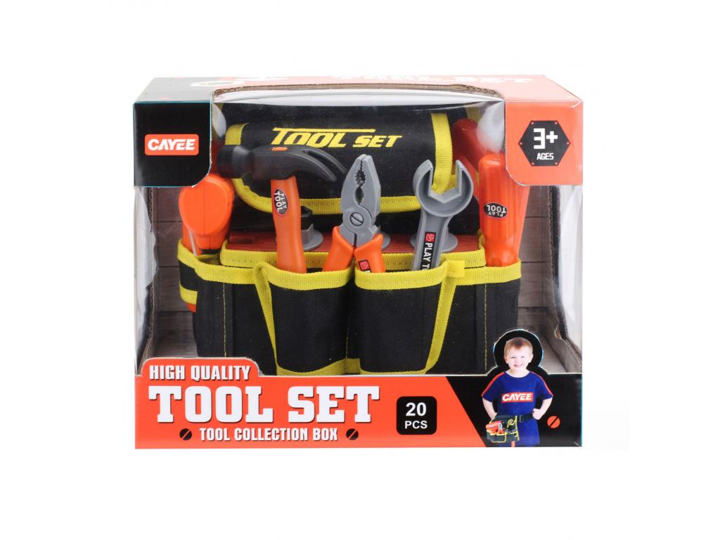 Szerszámkészlet táskával és övvel. Tartalmaz kalapácsot, csavarhúzót, fűrészt és villáskulcsot. Alkalmas 3 éves kortól.