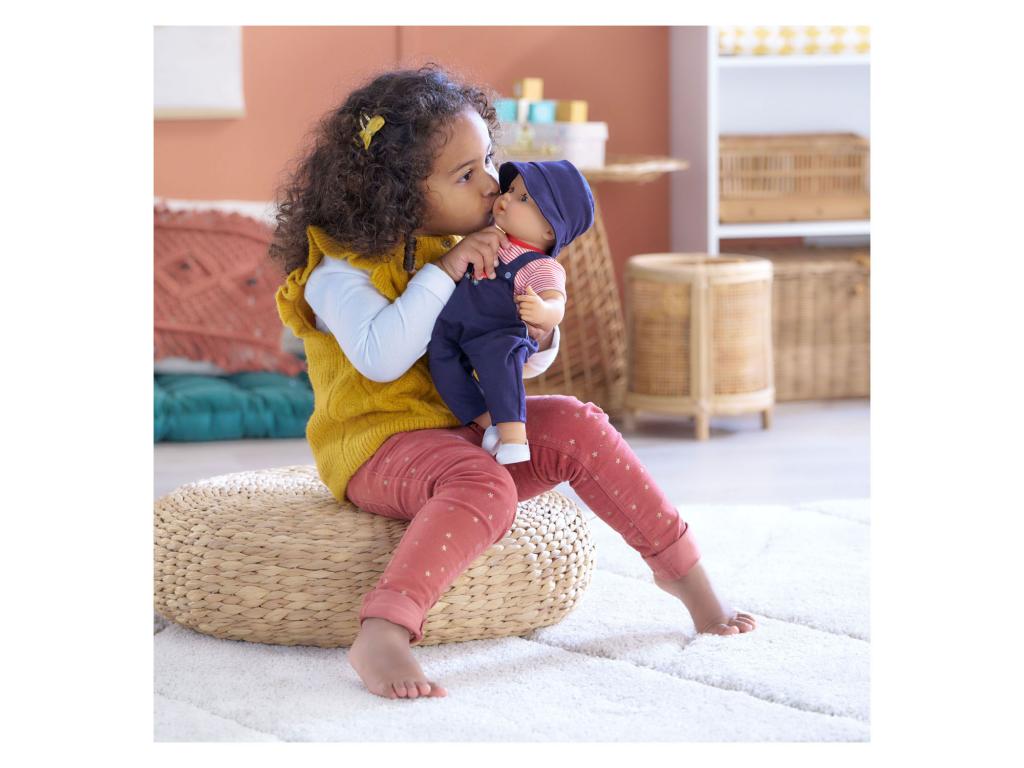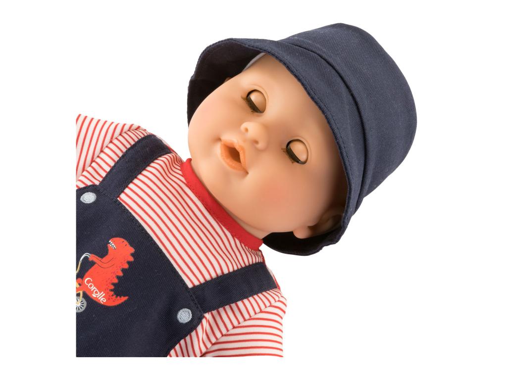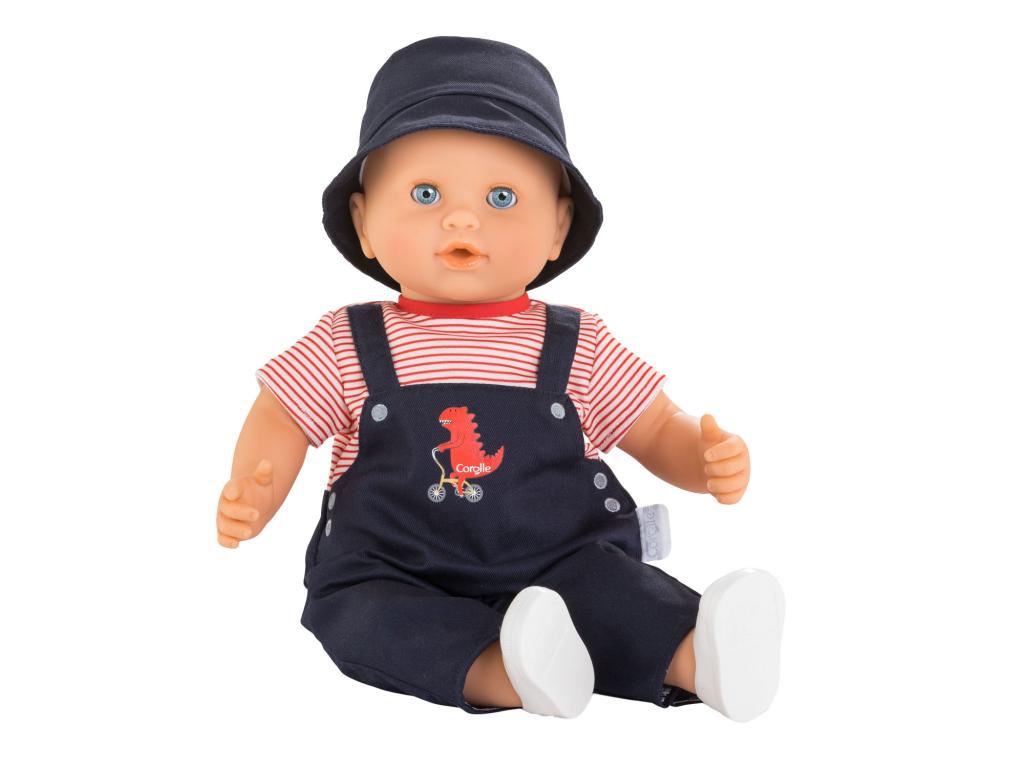 A Corolle (Elliot) 36 centiméteres babája. Rugalmas végtagokkal rendelkezik, amelyek lehetővé teszik, hogy a baba lefeküdjön vagy felegyenesedjen. A kék szemek becsukódnak, amint a baba lefekszik. Az arc, a karok és a lábak vinilből készültek, és vaníliaillatúak. Ruházat: kék dinoszauruszos tréningruha, csíkos póló, cipő és napszemüveg. Legalább 24 hónapos gyermekek számára alkalmas.