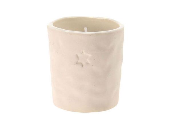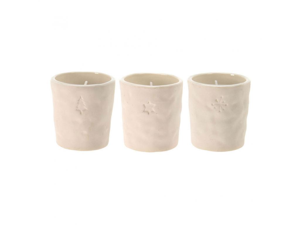 Gyönyörű 12 darabos készlet gyertyákkal porcelánedényekben. Az egyszerű, rusztikus üvegeket különböző karácsonyi figurák finom faragása díszíti. Minden egyes gyertya körülbelül 5,5 centiméter magas.