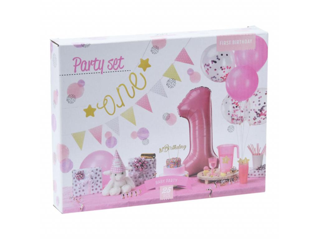 A Party dekorációs készlet 1. születésnapra - rózsaszín/lányok, 9 db. leírása: