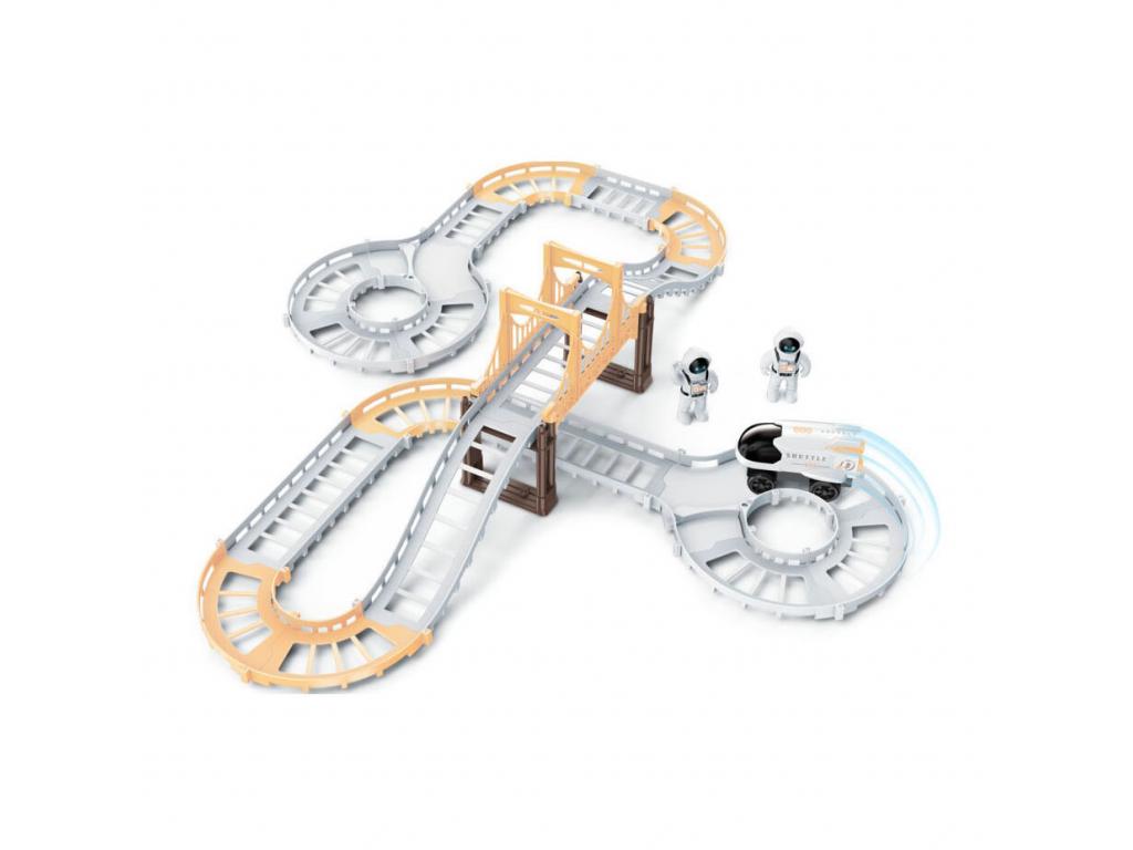 Fedezd fel a földönkívüli szórakozást az űrverseny-pályánkkal! Ez az izgalmas, 31 műanyag alkatrészből álló készlet korlátlan versenyzési szórakozást kínál. Kormányozd a rakétát a kanyarokban és a hídon át, miközben felfedezed az űrt. A műanyag szerkezet garantálja a fiatal felfedezők számára az intergalaktikus kalandok órákon át tartó eltöltését. A móka itt kezdődik! Tartalmazza: Rakéta és 2 űrjátékfigura.