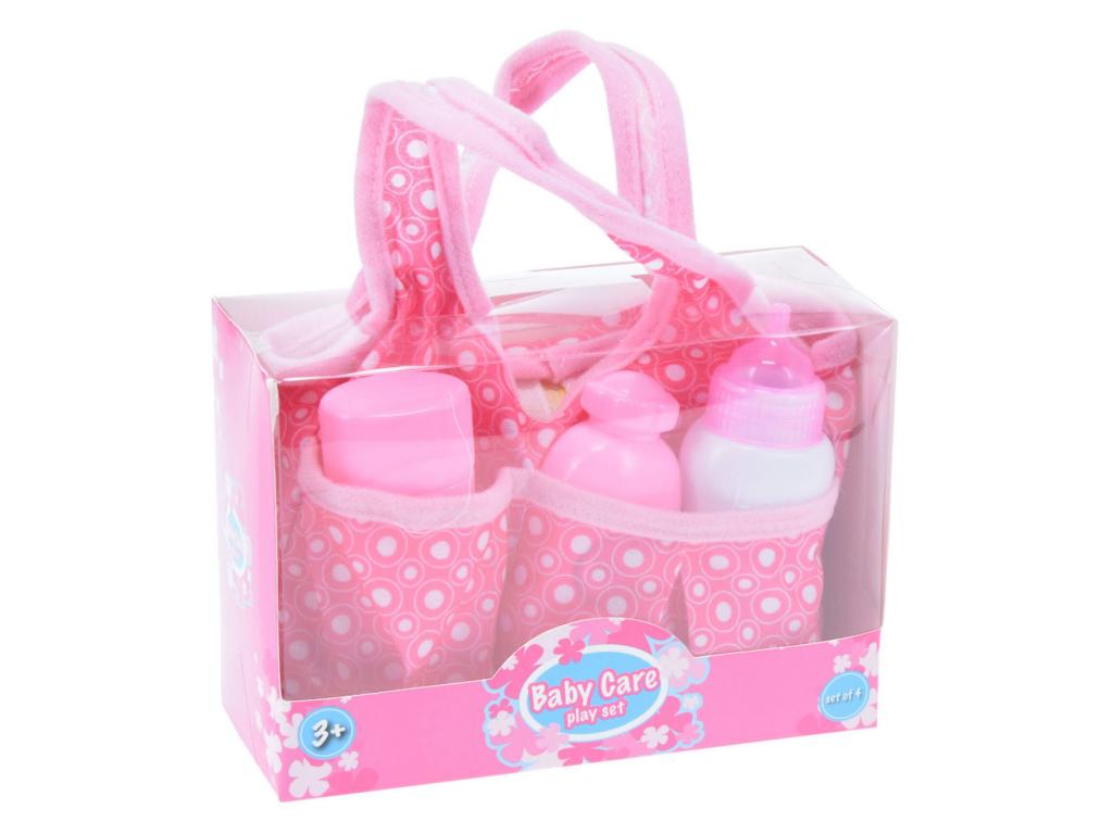 4 darabos babaápolási szett, amely 1 táskából és 3 műanyag kiegészítőből áll. Alkalmas 3 éves kortól.