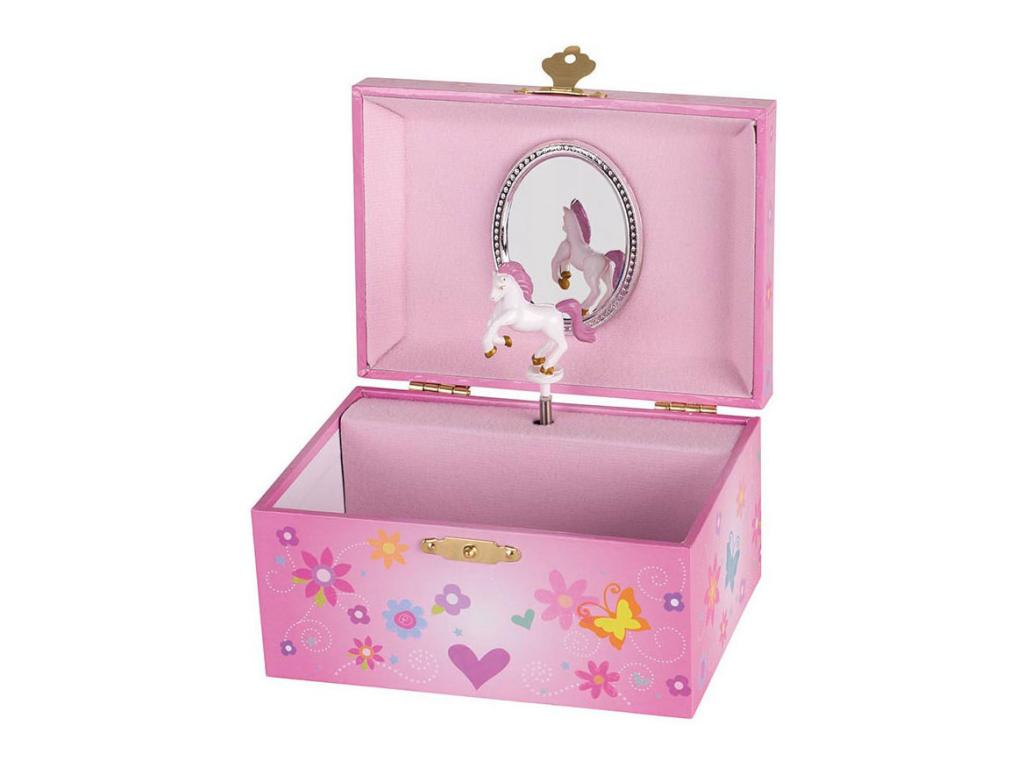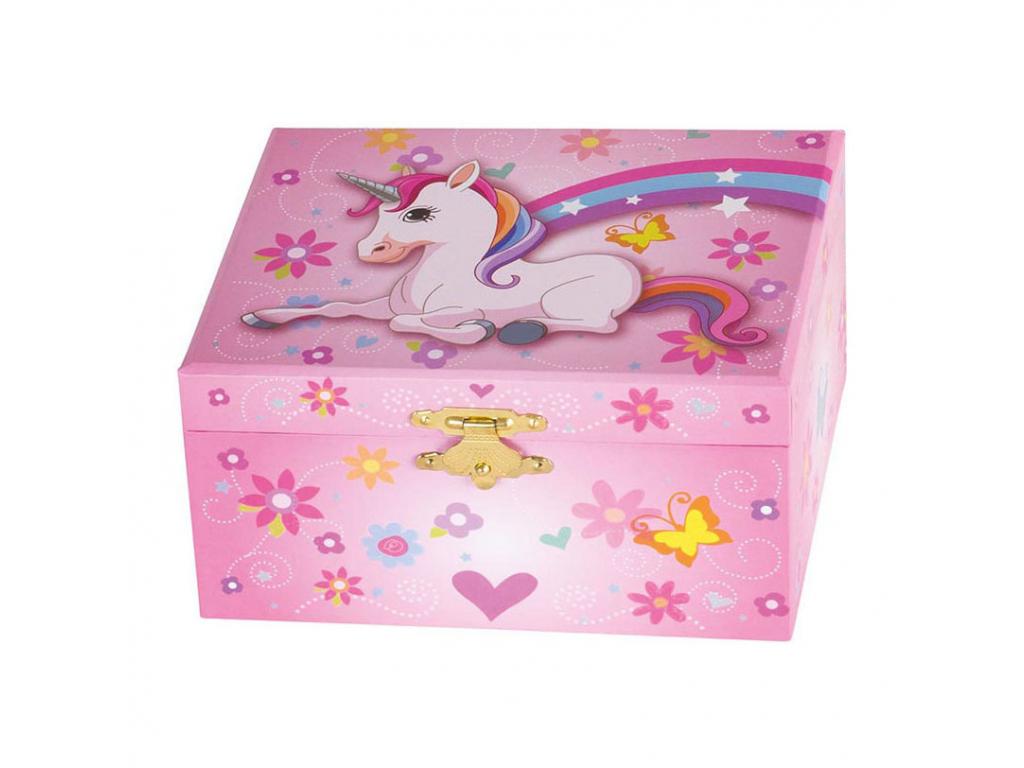 Goki zenedoboz egyszarvú nyomtatással és táncoló egyszarvúval a belsejében. A Hattyúk tava zenéjével. Méretek: 19 x 11 x 10 centiméter. Alkalmas 3 éves kortól.