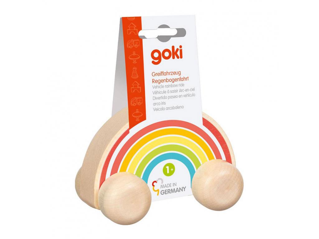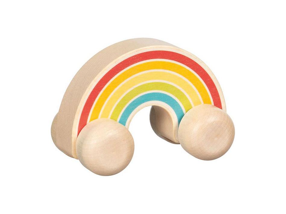 Ez a vidám szivárványos autó kényelmesen elfér a kis kezekben, és simán és karcmentesen közlekedik bármilyen felületen. A vidám szivárványszínek teszik teljessé ezt a járművet. Németországban készült kiváló minőségű fából. Anyag: fa. Alkalmas 1 éves kortól.