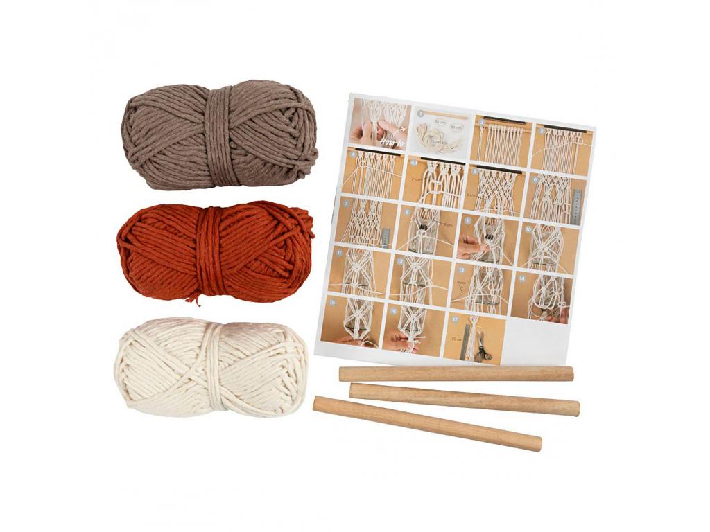 Ezzel a készlettel elkészítheted a saját makramé virágos medálodat. Tartalmazza az összes szükséges anyagot és útmutatót. Szeretné megtanulni, hogyan készítsen virág medált mindössze három makramé csomóból? Akkor ez a készlet pont neked való. A készlet mindent tartalmaz, amire szükséged lehet a kezdéshez. Kössük a 12 makramé kötelet egy fapálca köré, kezdve egy dupla fonallal és egy csatolt hurokkal. Kösse össze a medált egy négyzetes csomóval, és hozza össze az egészet egy tekercscsomóvá. Az eredmény a legszebb virágos medál, amelyet bárhol használhat otthonában. A doboz hátoldalán találsz utasításokat, de beolvashatod a QR-kódot is, és követheted az online utasításokat. Tartalom: makramé zsinór, fa akasztó