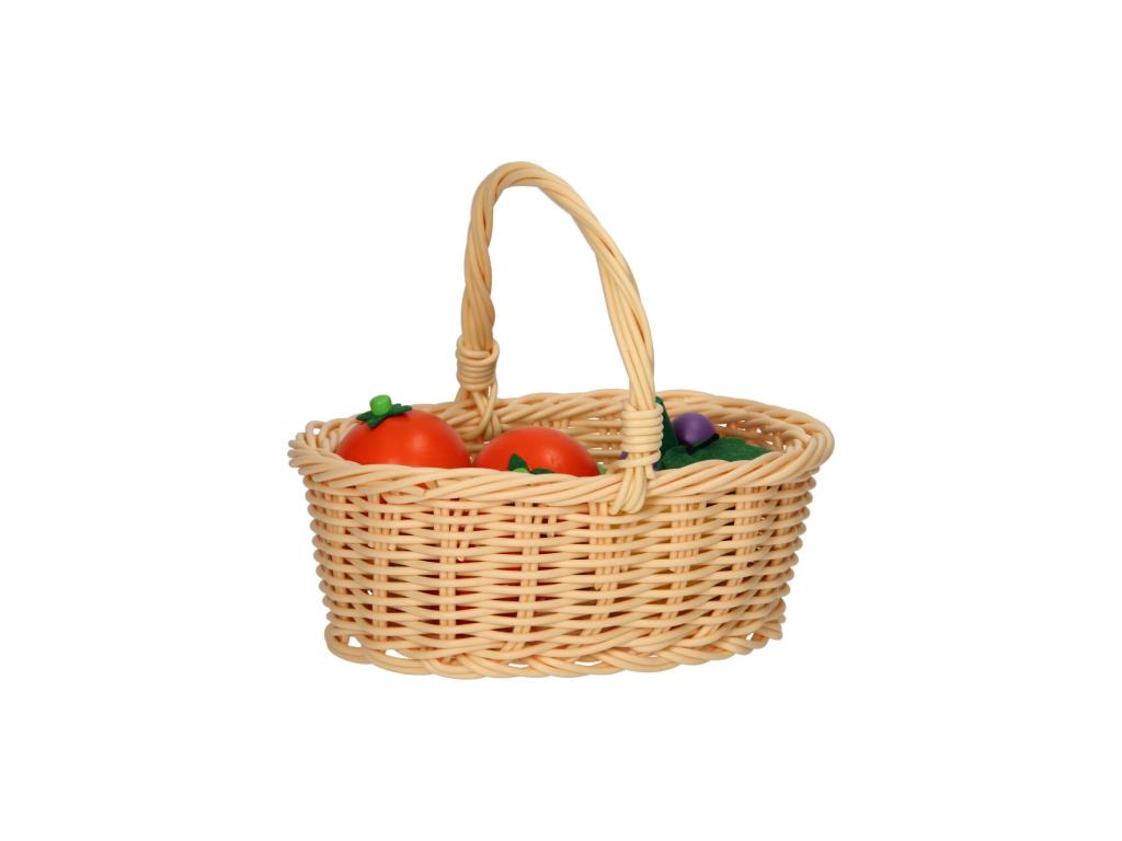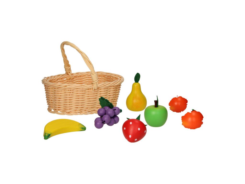 Fából készült gyümölcsök piknikkosárban, 7 db.