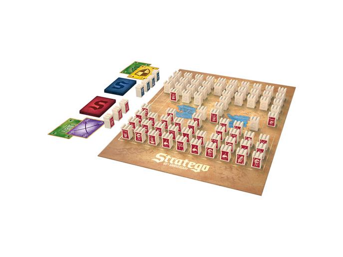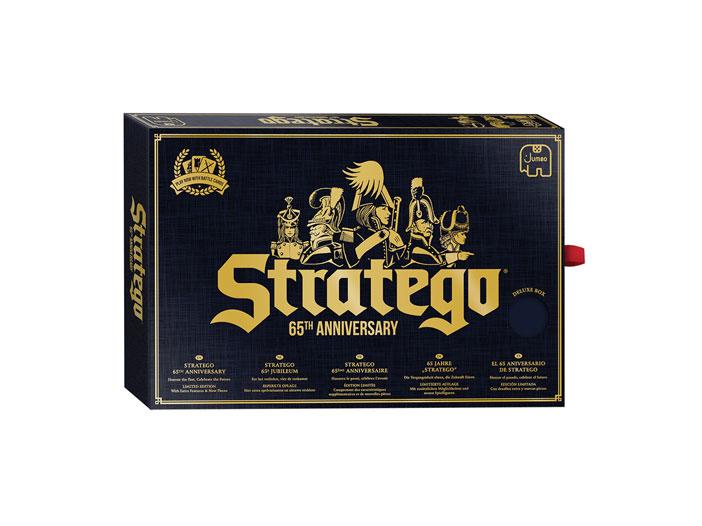 Tiszteljük a múltat, ünnepeljük a jövőt A 65. évforduló alkalmából női kémünket ebben a limitált évfordulós kiadásban marsallá léptetjük elő, és más nőket is arra ösztönöz, hogy vállalják el a hadnagyi és a cserkész rangot. Mostantól személyre szabhatod csapataidat azzal, hogy férfi és női példaképek közül választhatsz e három fontos tisztségre. Játssz az eredeti játékkal, vagy próbálj ki egy másik, eddig soha nem látott játéklehetőséget: a 30 csatakártya bevezetését. Fedezz fel új átlós mozdulatokat, ugrásokat és új támadó- és védekezőerőket. Tervezz stratégiát, vagy add hozzá a meglepetés elemét, miközben pozíciókat váltasz, áthidalod a tavat, vagy minden eddiginél messzebbre nyomulsz a határon túlra. A térkép hirtelen felfordításával felülmúlhatod ellenfeleidet a csatában, növelve a sikeres támadás esélyeit. De légy óvatos ... Ellenfelednek lehet, hogy van egy ellenstratégiája, és kijátssza a saját kártyáját! Ez a gyönyörűen megtervezett és illusztrált 65. jubileumi kiadás új, nehezebb játékfigurákat tartalmaz, újratervezett profillal. A játék egy kiváló minőségű dobozban kerül forgalomba, amely minden Stratego gyűjtőnek becsületére válik.