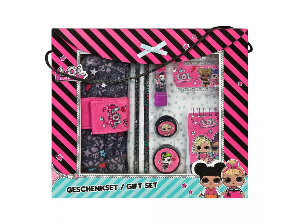 LOL Meglepetés! 8 darabos írószer ajándékcsomag. Tartalom - 2 ceruza - 1 ceruzahegyező - 1 vonalzó tükörrel - 1 iratkapocs - 1 tolltartó - 1 jegyzettömb - 1 rúzstörlő 3 éves kortól alkalmas.