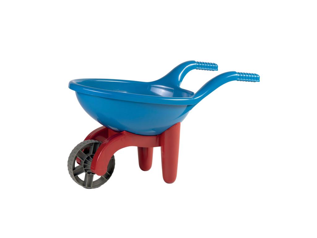 Zárt újrahasznosítási rendszerből származó újrahasznosított műanyagból készült gyermek talicska. Méretek: kb. 56 x 27,5 centiméter. Legalább 18 hónapos gyermekek számára alkalmas.