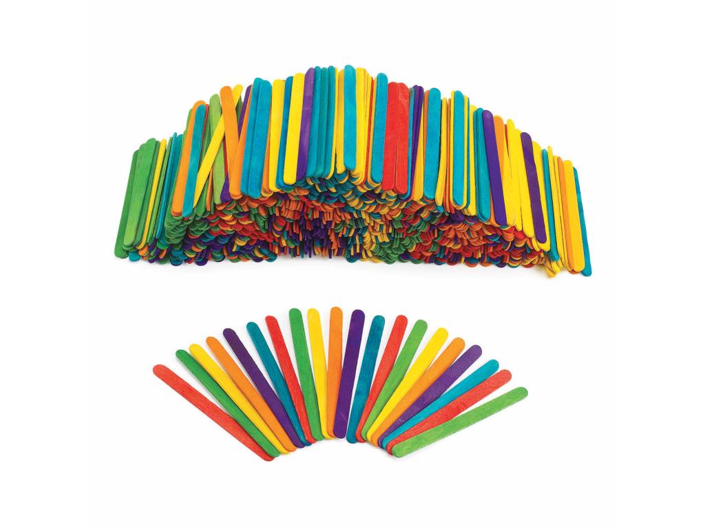 Színes fából készült kézműves pálcikák. 1000 darabos készlet piros, zöld, sárga, narancssárga, lila és kék színben. 10 cm x 1 cm méretű.