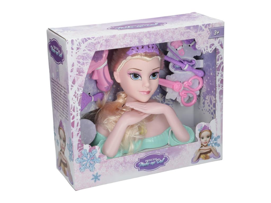 Sminkelt baba kiegészítőkkel. A csomagolás egy babát és különböző kiegészítőket tartalmaz, amelyekkel a baba haját lehet fésülni, fújni és díszíteni. A baba 21 cm magas, és különböző tartozékokat tartalmaz. A baba 3 éves kortól alkalmas.