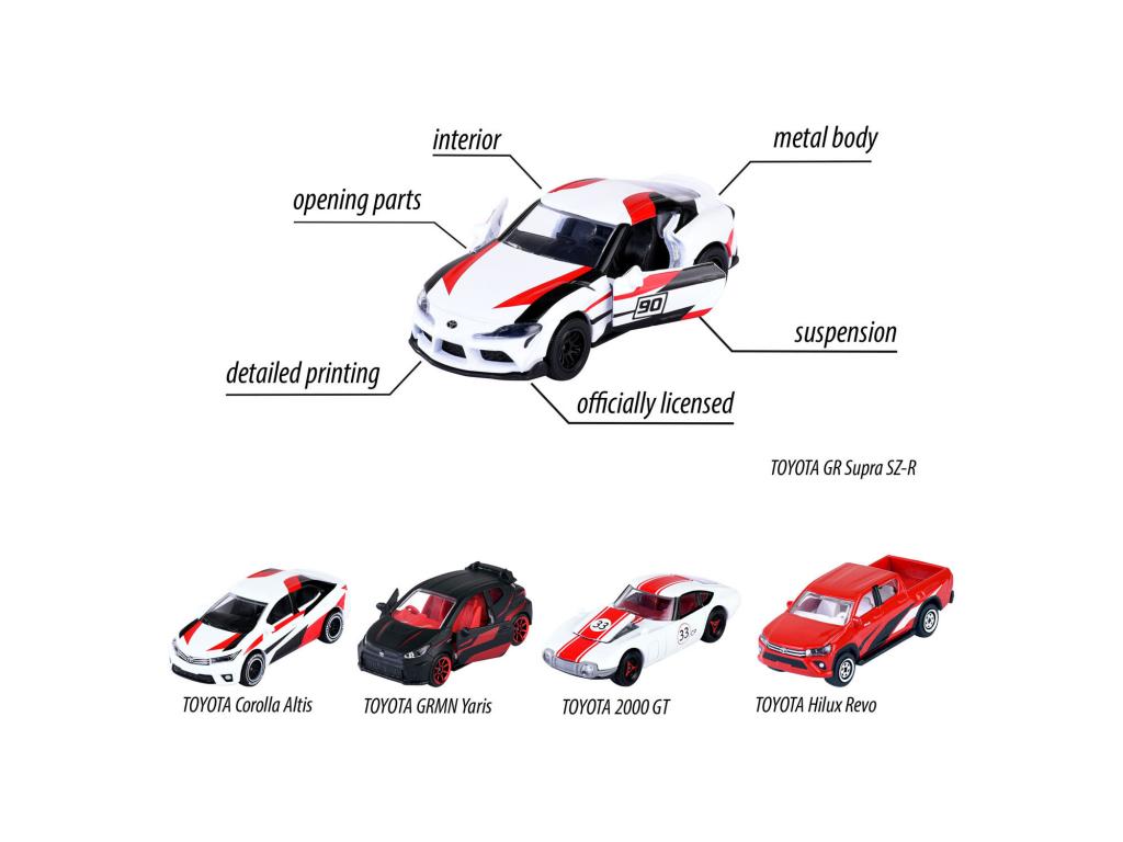 A Majorette Toyota versenyautó ajándékcsomag, 5 db leírása: