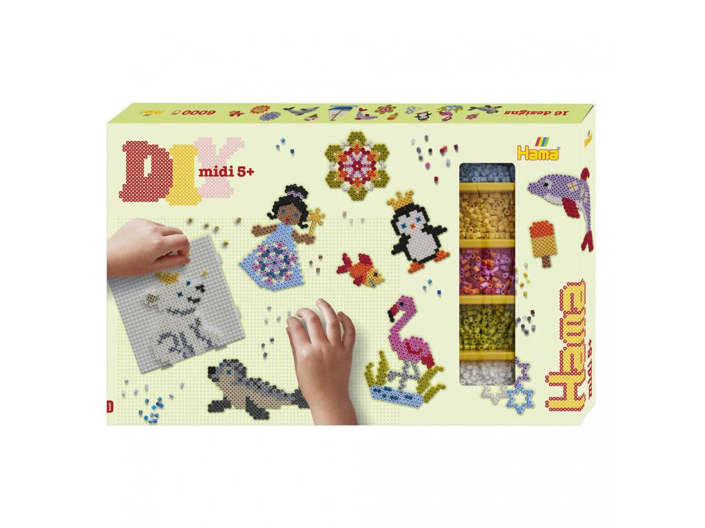Nagyméretű Hama vasalható gyöngyök ajándékdoboz 6000 vasalható gyöngyöt tartalmaz lágy színekben és 3 tálcával. Alkalmas 5 éves kortól.