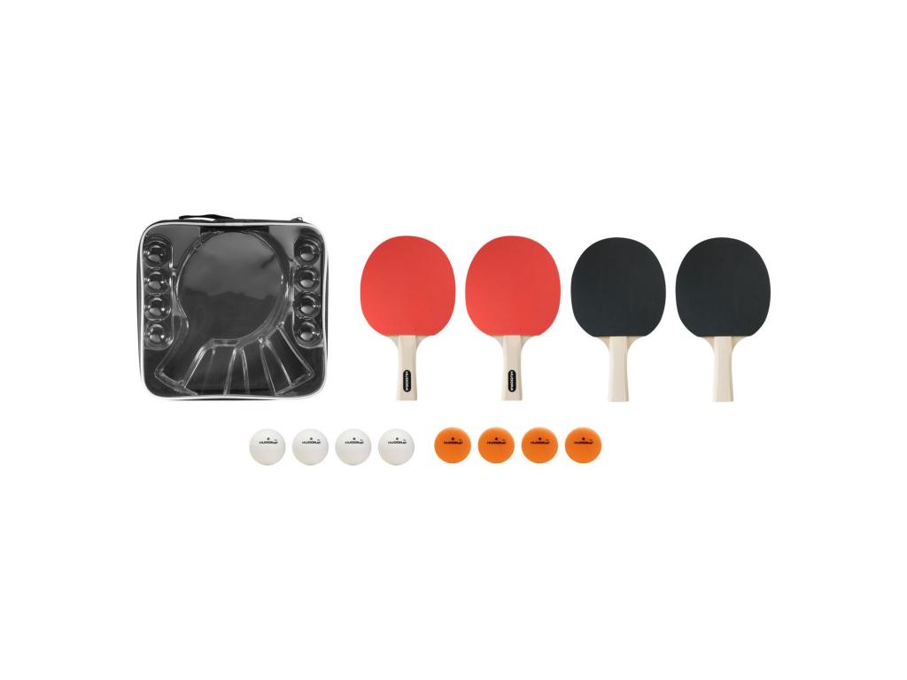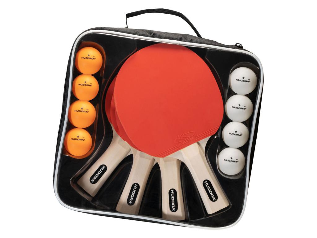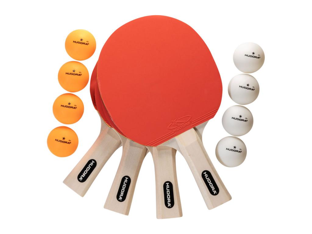 Asztalitenisz szett a HUDORA-tól 4 ütővel (6 mm vastag) és 8 asztalitenisz labdával.