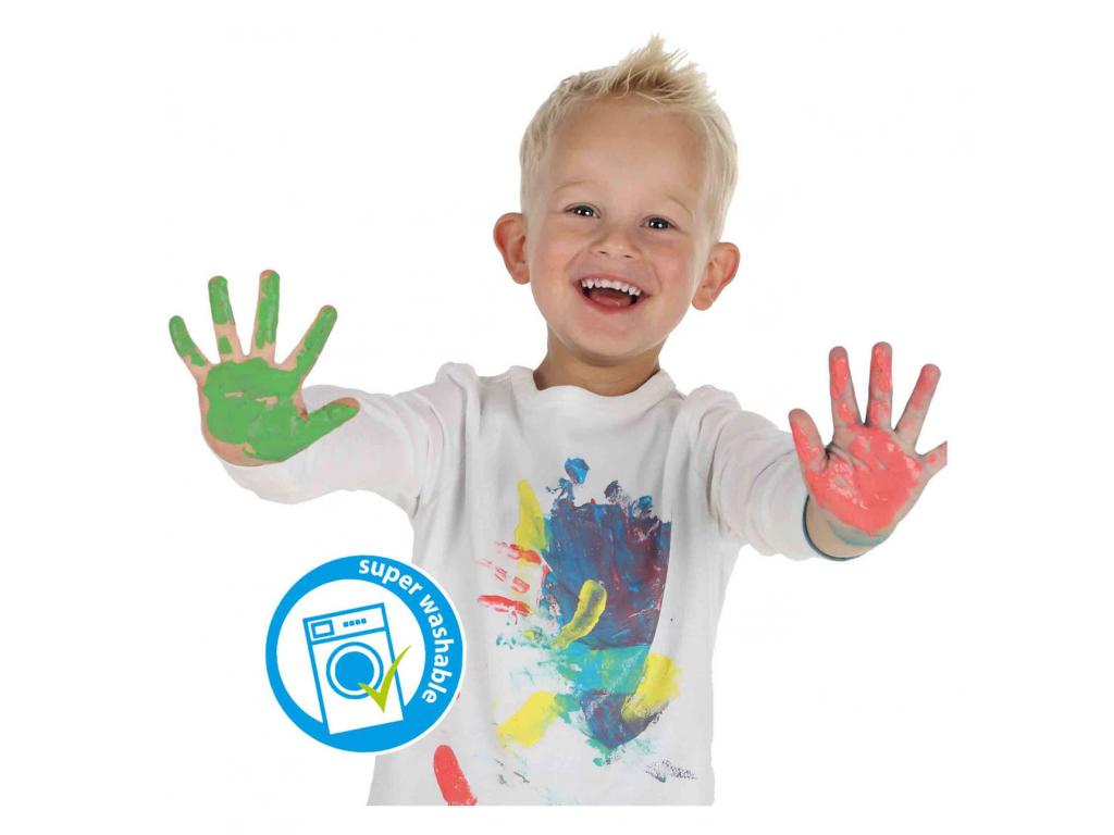 4 színű ujjfesték új kombinációja 110 ml-es tégelyben! Az ujjfesték a SES Creative egyik legismertebb terméke. Minősége, színintenzitása és moshatósága verhetetlenné teszi az ujjfestéket. Ezzel a sárga, piros, kék és zöld színekből álló készlettel a gyerekek a legszebb alkotásokat készíthetik el ujjaikkal.