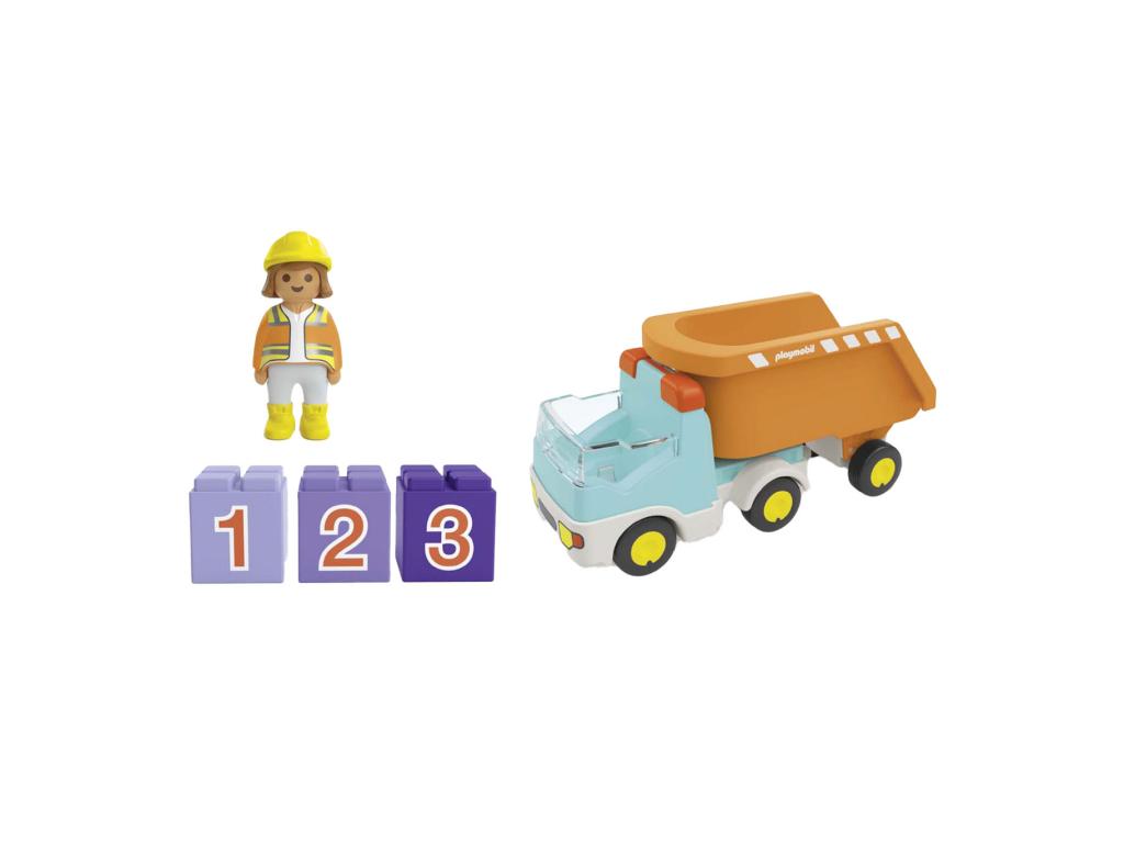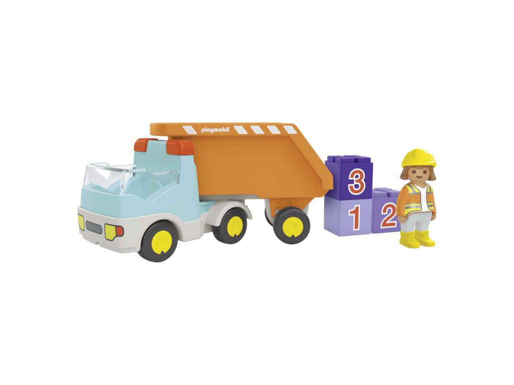 Playmobil 70126 Dump Truck 1.2.3 A robusztus, összecsukható építőmunkás a nehéz építőkockákat a billenő funkcióval ellátott dömperrel szállítja. Méretek: 19 x 7 x 10 (LxSxH)