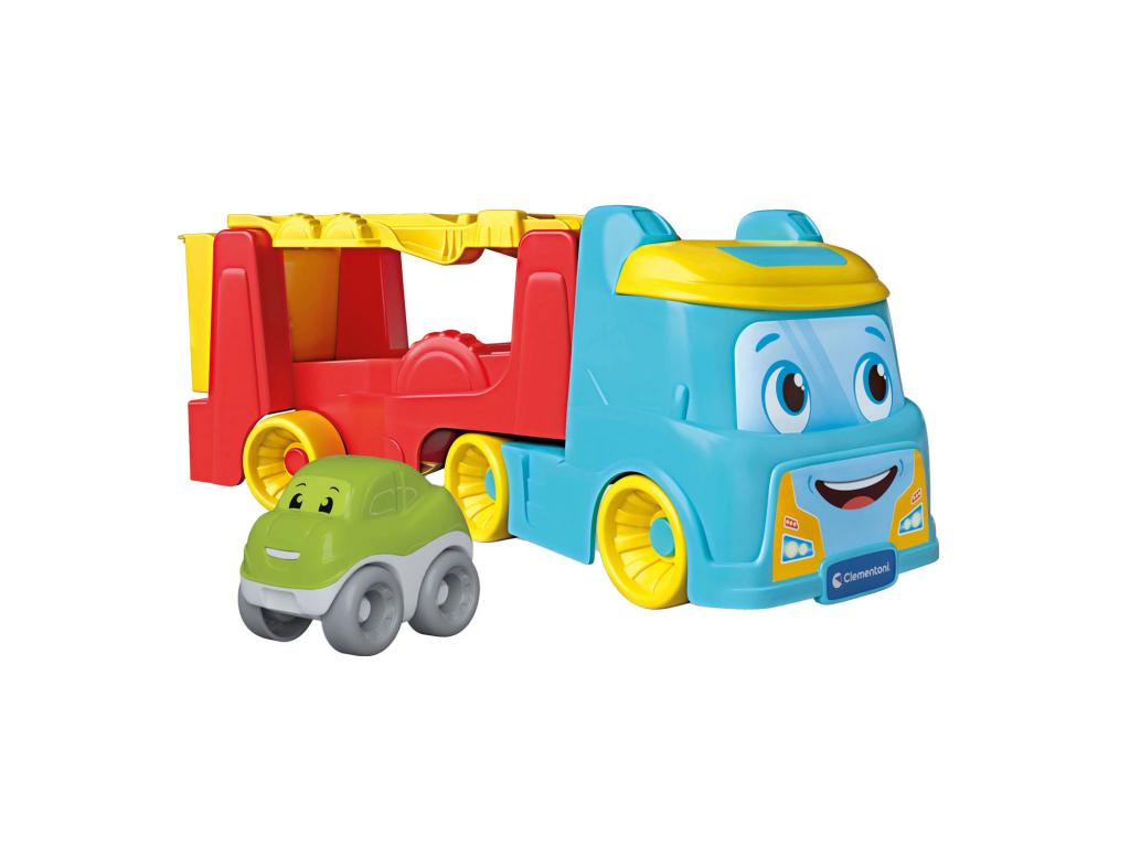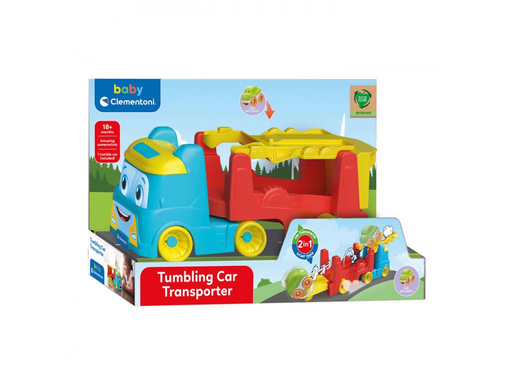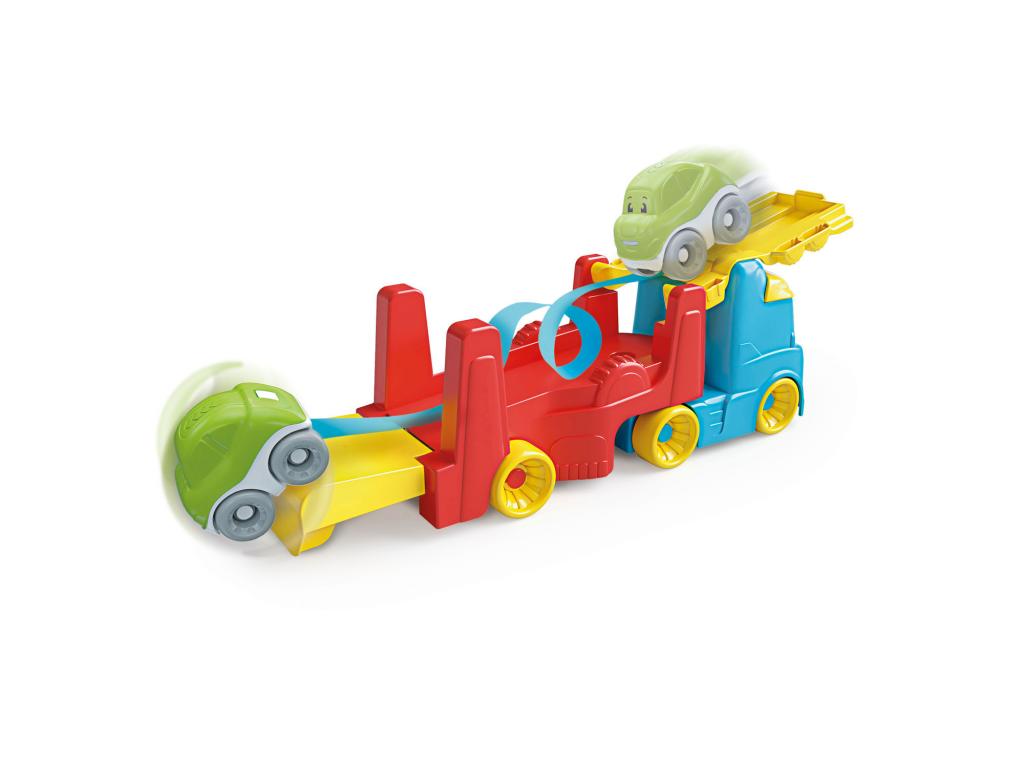 A Baby Clementoni színes teherautója átalakul autószállítóvá, hogy elszállítsa a guruló autókat! Az autószállító pályává alakul, amelyen a bukfencező autó száguldozhat és gurulhat. Az autó billen és nagyon vicces bukfenceket csinál, ezzel serkentve a gyermek kíváncsiságát. A játék serkenti a gyermek kézügyességét és képzelőerejét, aki a teherautóval valódi környezetet teremthet újra. Bővíthető játék. Fedezd fel a bukdácsoló autók minden színét! Játék a jövőért: 100%-ban újrahasznosított anyagból készült termék.