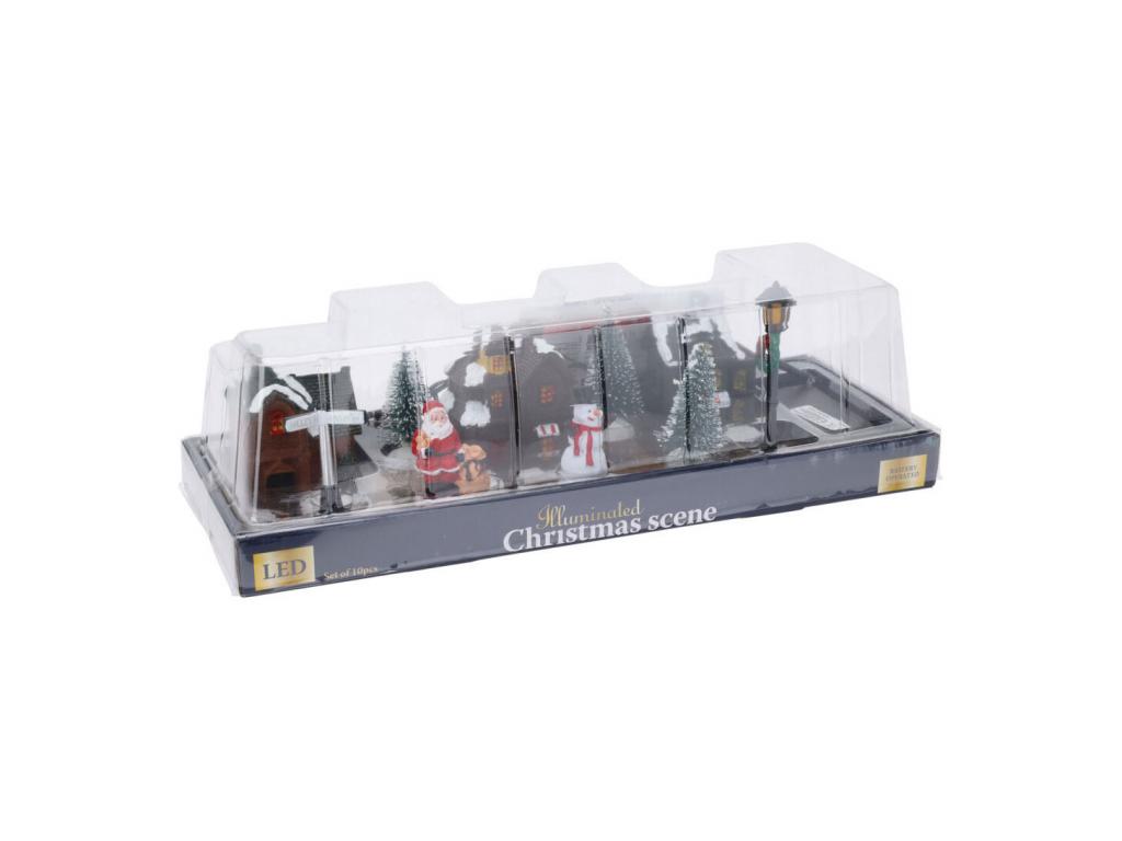 Karácsonyi falu LED-del, 10 db.