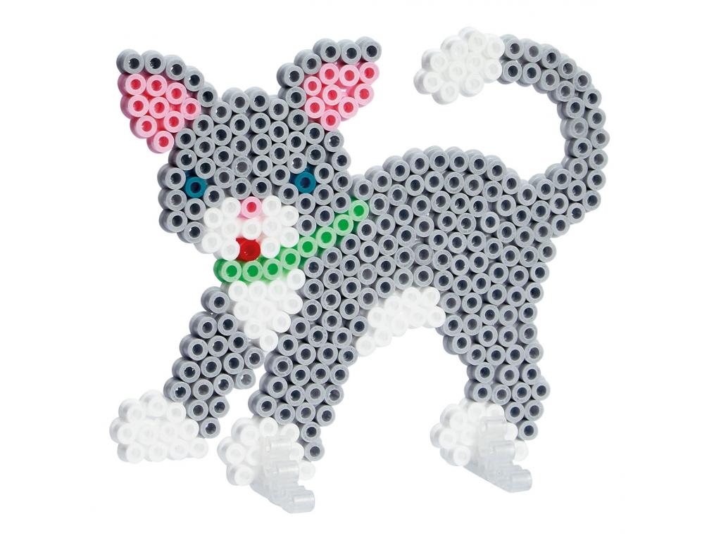 Hama vasalható gyöngykészlet macska és kutya 2000 gyönggyel, hatszögletű vasalható gyöngybetéttel, gyöngylábakkal, használati utasítással, vasalópapírral és használati utasítással.