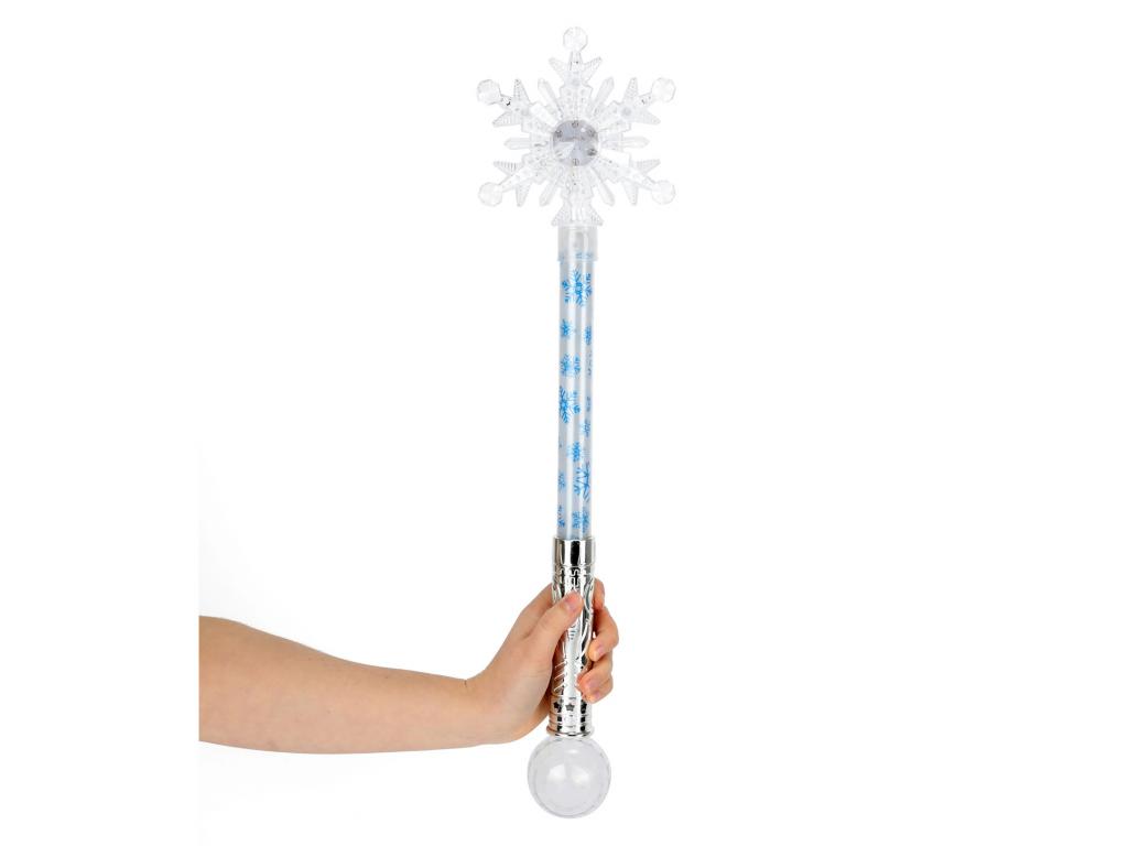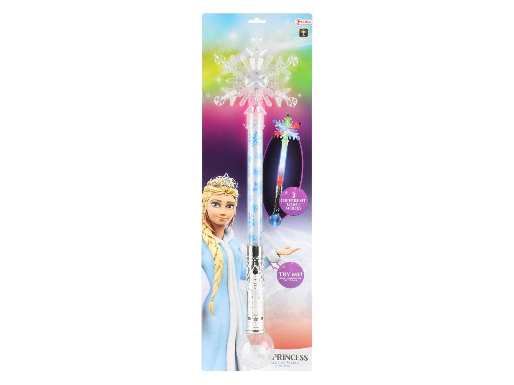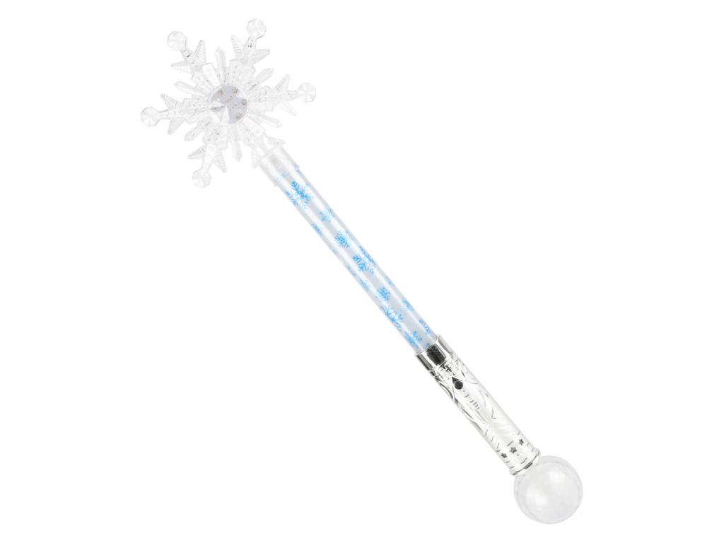 Jéghercegnő pálca fénnyel és hanggal. A varázspálca 3 fénymóddal és egy nagy, átlátszó hópehellyel rendelkezik a hegyén. Hossza: 21 cm. Alkalmas 3 éves kortól.