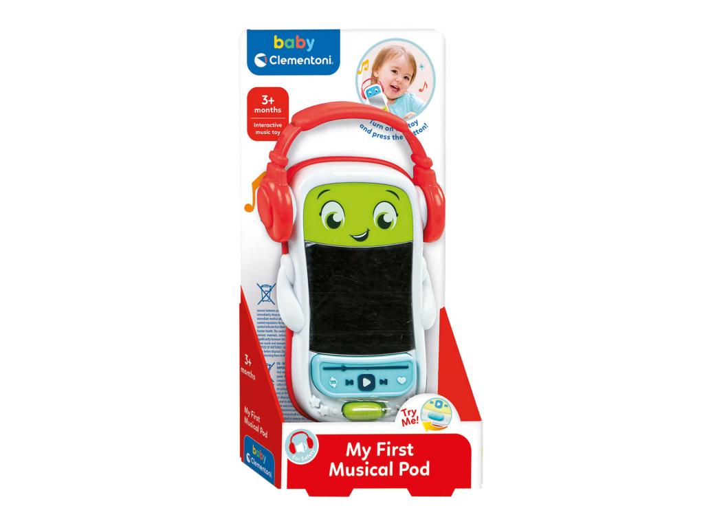 Fényekkel és tükörrel ellátott zenedoboz, amely utánzó játékkal ösztönzi a gyermeket. A játék zenével és hangokkal stimulálja a gyermek hallási érzékelését, miközben négy különböző zenei műfajt élvezettel hallgat. A My First Music Pod segítségével a gyermek gyakorolhatja és élvezheti a különböző tárgyak megérintését és megfogását. Ezzel a játékkal a gyermek utánozza anya és apa zenelejátszójának használatát. Fedezze fel a Baby Clementoni termékcsalád összes utánzó játékát.