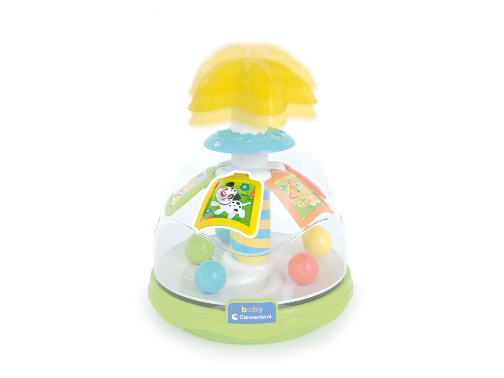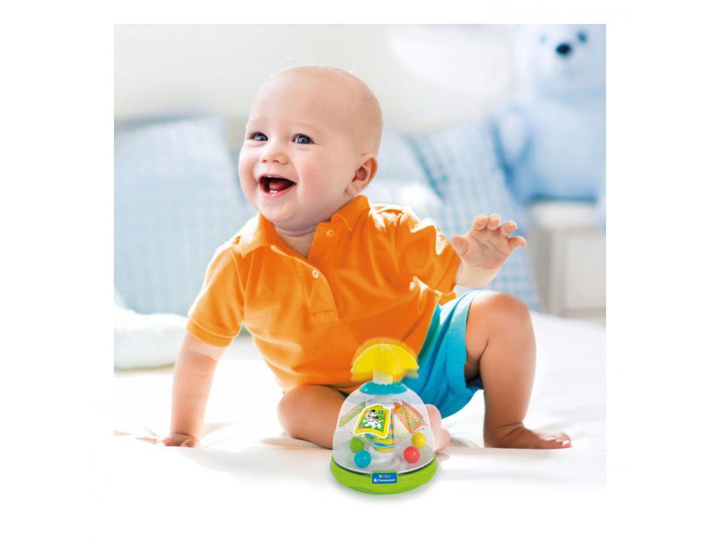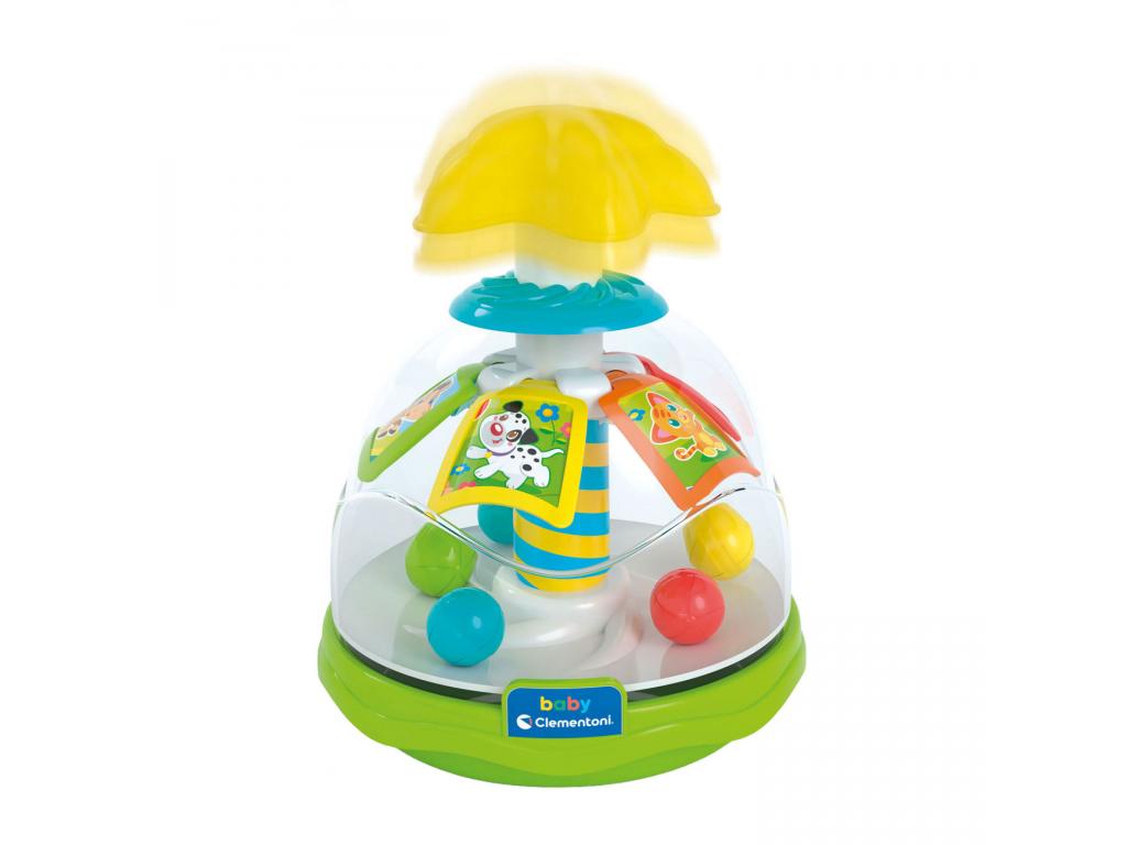 Szórakoztató pörgettyű sok pattogó színes golyóval és varázslatos függőhatással. A csillag megnyomásával kinyithatod a belső oldalon lévő akasztókat, miközben a golyók pörögnek és pattognak. A forgó tetejének köszönhetően a gyermek fejleszti a kézügyességet és a motoros koordinációt. Ajánlott életkor: 9 hónapos kortól.