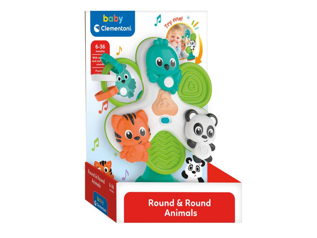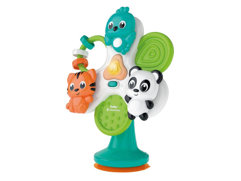 Egy mókás állatos kör, hogy a kicsik szórakoztassák a kicsiket, miközben az etetőszékben esznek! A 3 mókás állat megpördül saját maga körül. A 3 karikával és egy kis propellerrel, amit el tudsz forgatni. A talp alatti tapadókoronggal egyszerűen és praktikusan rögzítheted a játékot az etetőszék tetejére. Rengeteg dallammal és vicces hanggal, amelyek remek szórakozást nyújtanak gyermekének, és serkentik érzékeiket és a szem-kéz koordinációt.