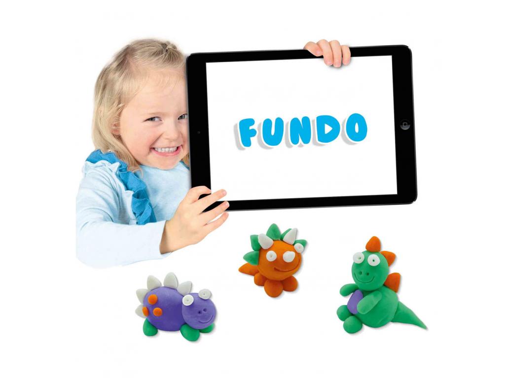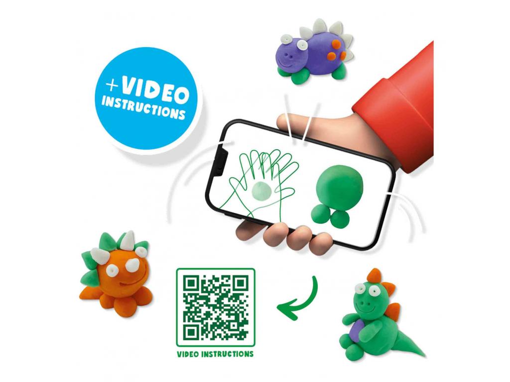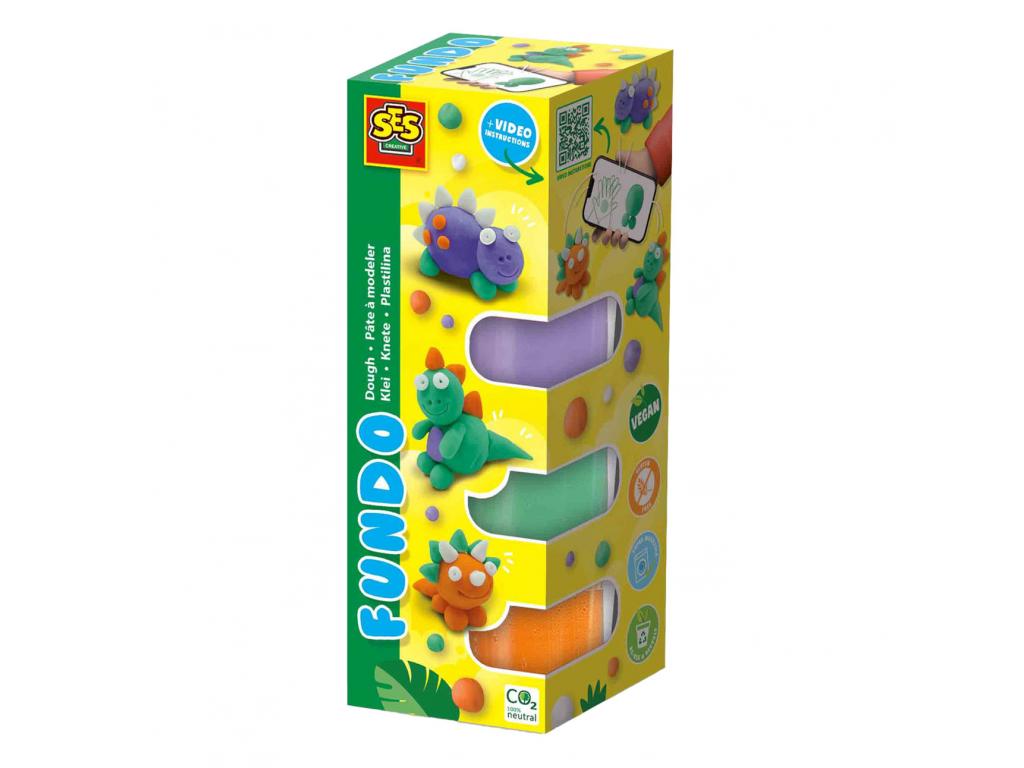 FunDo, az agyagozás interaktív módja a kisgyermekek számára! Az agyagfigura készítése elég nagy kihívás lehet, de egy kis extra segítséggel biztosan sikerülni fog. A FunDo készletekben található gyurma pontosan illeszkedik a 3 elkészíthető figurához, és tartalmaz egy praktikus modellező pálcikát is. A papíralapú használati utasítás mellett a gyerekek egy lépésről-lépésre bemutató videós oktatóvideón is részt vehetnek a tableten vagy telefonon. Hasznos! Így a végtelenségig ismételhetik vagy szüneteltethetik, neked pedig szülőként nem kell aggódnod! Egyszerűen csak szkenneld be a QR-kódot, és kezdj el játszani! A SES Creative gyurmája teljesen vegán, gluténmentes és könnyen mosható. A modellezőgyurma átlátszó, puha, és a visszazárható csomagolásnak köszönhetően sokáig használható. A FunDo modellezőgyurma - Dinos a narancssárga, pasztellzöld, lila és fehér színekből áll, így könnyen használható Agyagból T-Rexet, Stegosaurust és Triceratopsot készíthetsz.