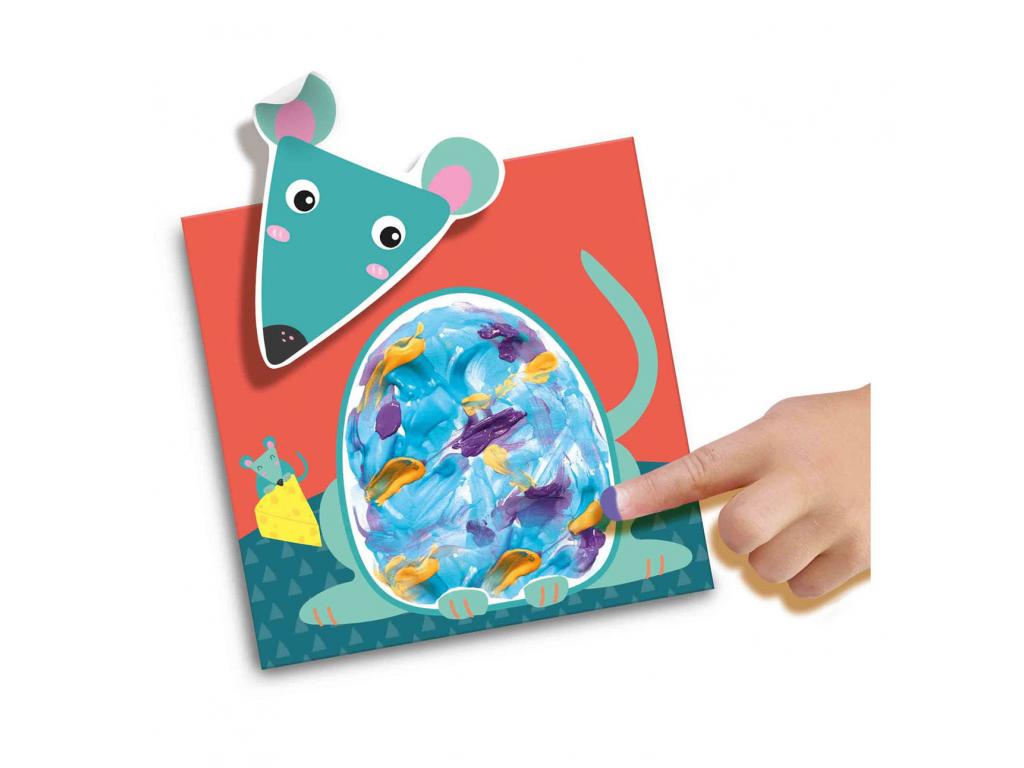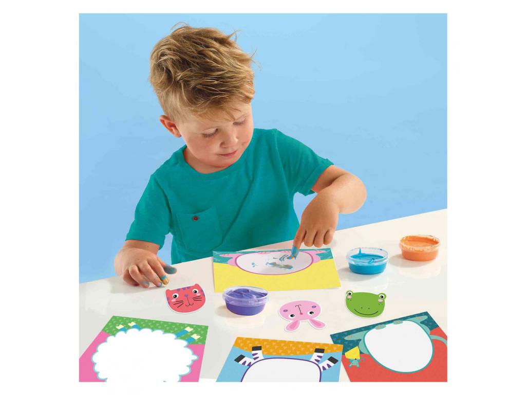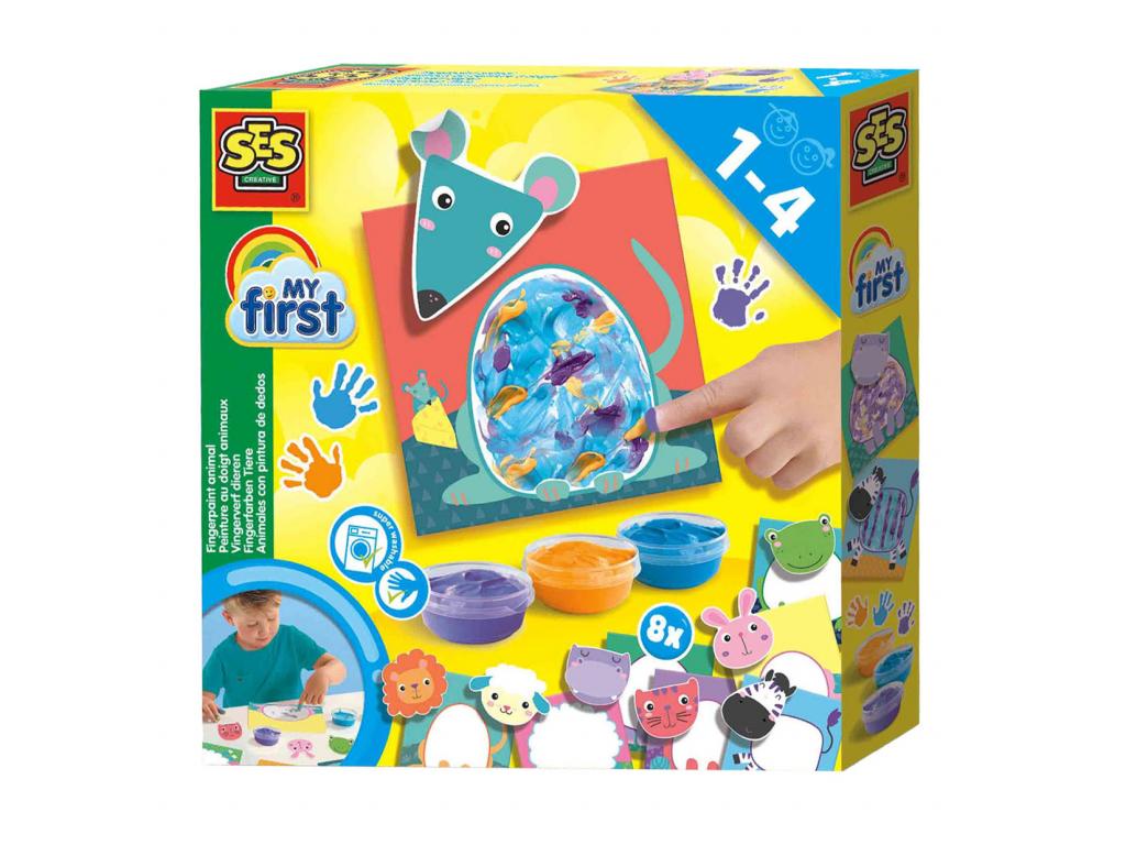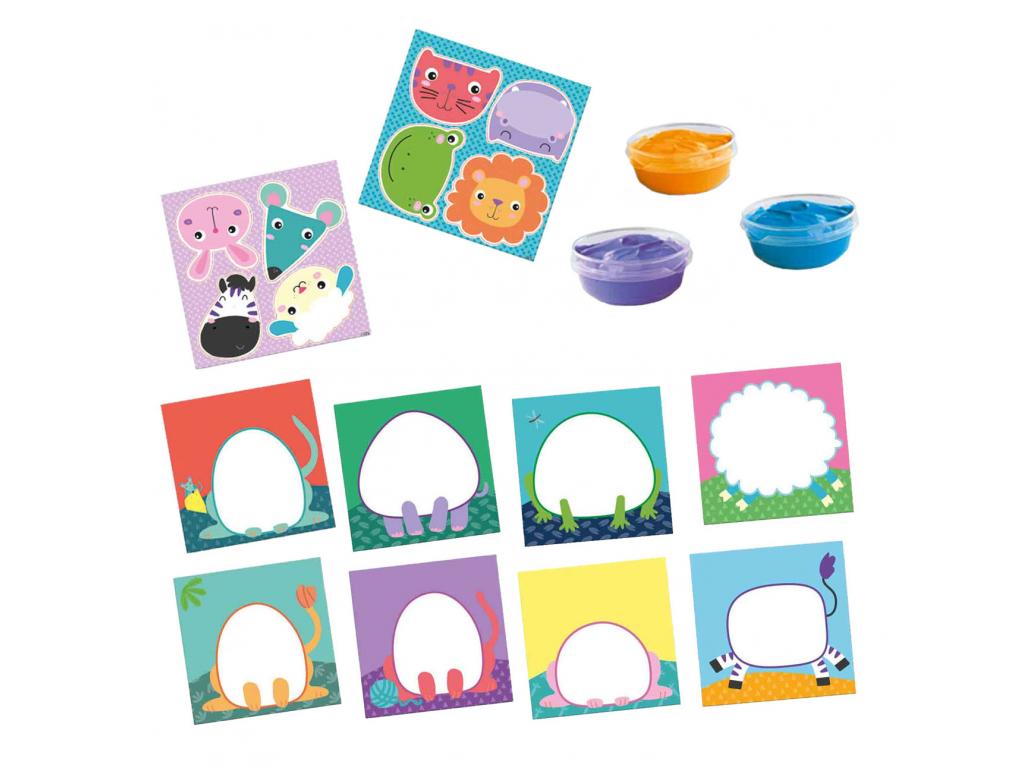 A My First - Ujjfestés állatokkal egyszerű módon vezeti be a kicsiket a kézműveskedésbe. A 8 vidám állatkártya szabadon színezhető a 3 színű ujjfestékkel, keveréssel és illesztéssel. A kicsik együtt is megtalálhatják a megfelelő állatfejet, és a megfelelő matricát felragaszthatják a kártyára. Szórakoztató elfoglaltság a kisgyermekes szülőknek, és mindig van egy házi készítésű eredmény, amire büszkék lehetnek!
