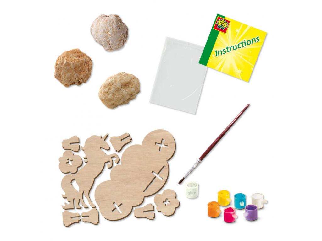 Fedezd fel a geodákat! Ezzel a SES Creative készletével nemcsak felfedezheted a különböző geodákat, hanem gyönyörűen meg is mutathatod őket ezzel az egyszarvú kijelzővel! A geódákhoz hasonlóan a kijelző is tetszés szerint díszíthető. A geódákat egy szülő segítségével fel lehet törni, hogy gyönyörű kristályok kerüljenek elő.