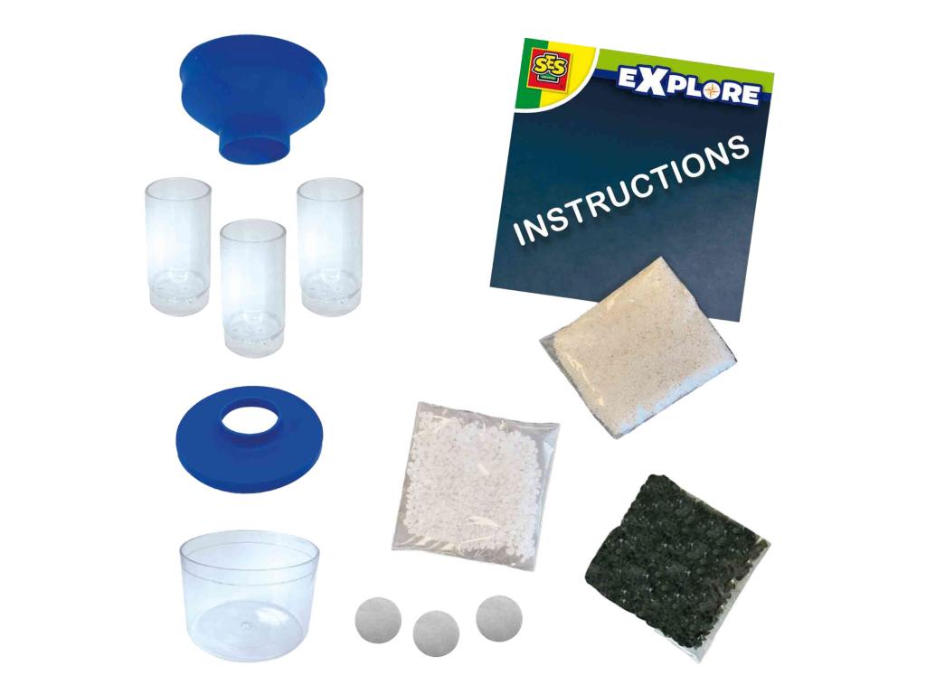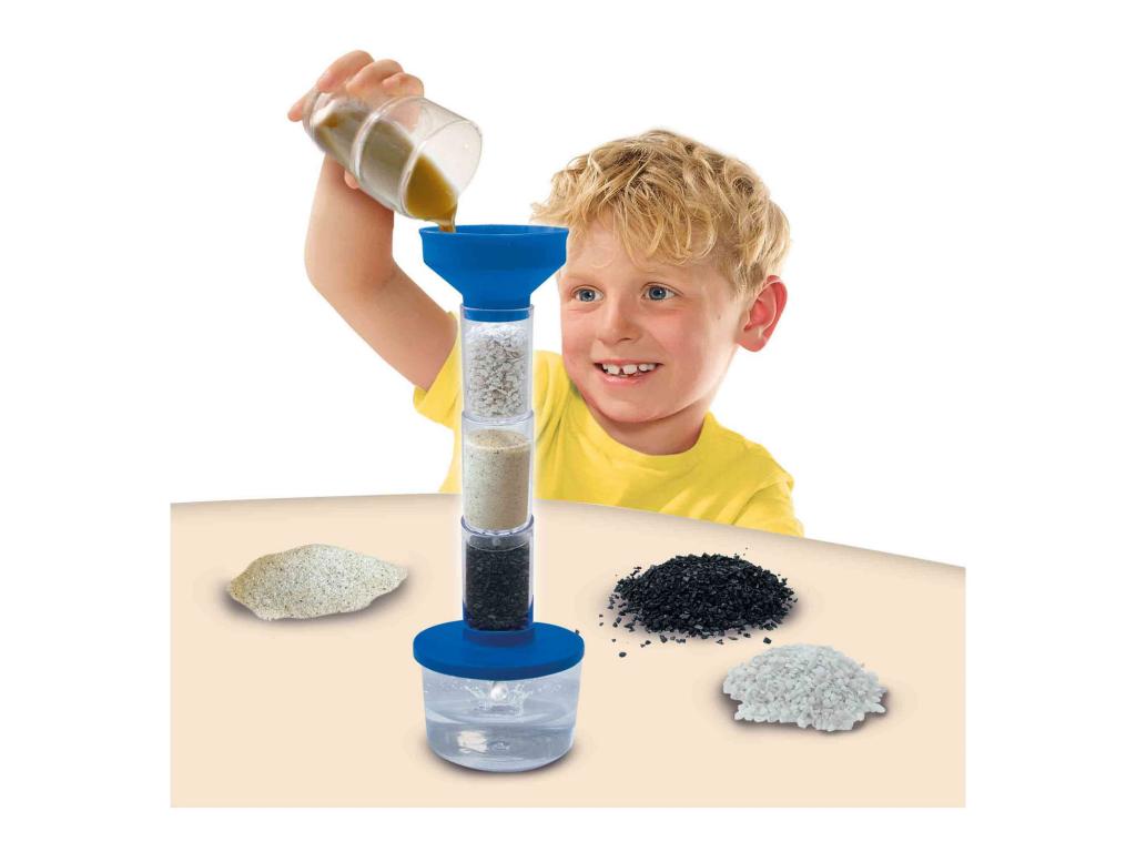 Kövesse nyomon a vizsgálatot! Az Explore vízszűrő megismerteti a gyerekeket a természettudományokkal és a természettel. Víz a tóból vagy az árokból: A 6 darabos vízszűrő mindent beenged. Szereld össze a 6 darabos vízszűrőt, és figyeld meg, hogyan áramlik át a víz a szűrő különböző rétegein. A kavicsok, a homok és a szén lépésről lépésre szűrik a vizet! Ezáltal eltávolítja a vízből a durva gallyakat és a szennyeződéseket. Ez az oktató STEM játék megszűri az összegyűjtött vizet, és biztosítja a tiszta végeredményt! Tartalom - 6 darabos vízszűrő - Gránit kövek (20 g) - Porcelán homok (20 g) - Aktív szén (15 g) - Használati útmutató 8 éves kortól alkalmas.