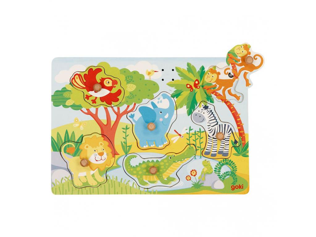 Goki fa játék puzzle: állatkert hanggal, 6 db