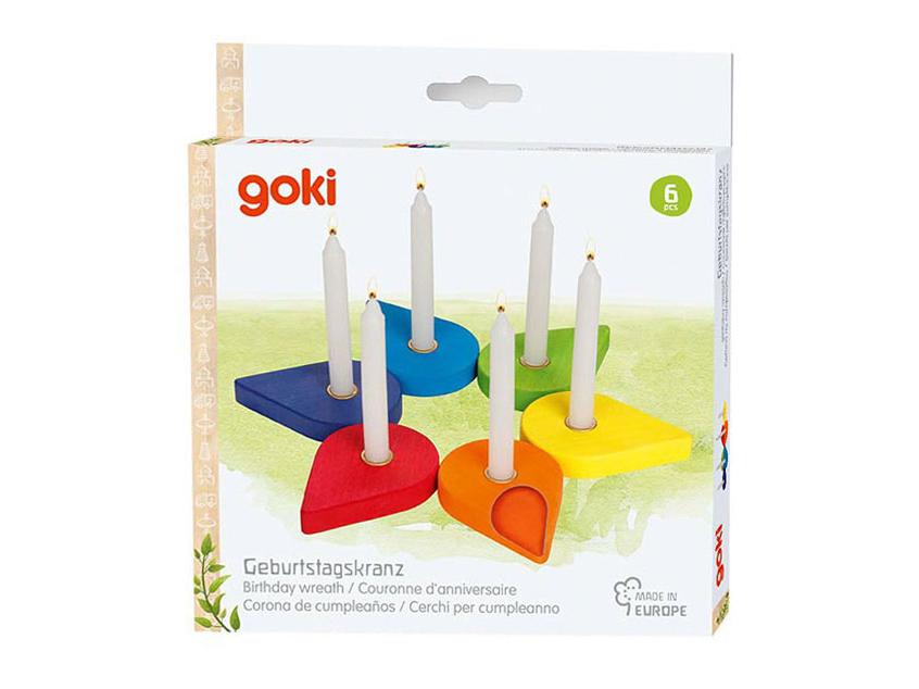 Goki születésnapi koszorú gyertyatartó fából, 6 db.