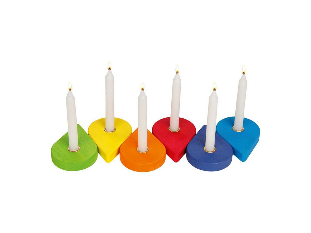 Születésnapi koszorú, ami más: a 6 fából készült gyertyatartó a szivárvány színeiben ragyog. Ezeket a gyertyatartókat egyenként is használhatja, vagy kreatívan elrendezheti őket a születésnapi asztalon. Akárhogy is, ünnepi kiegészítő! Méretek: 9,3 x 6,5 x 1,5 cm. Anyag: fa.