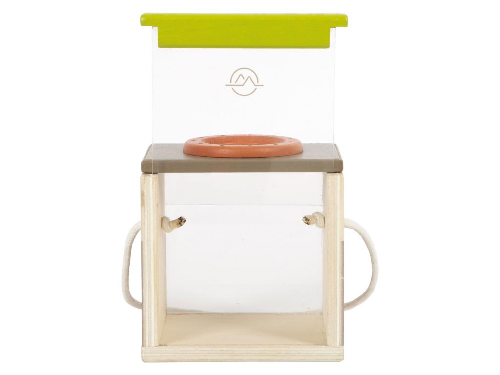 Teljes áttekintés a bogarakról, hernyókról és még sok másról! A gyerekek élvezettel fedezik fel az őket körülvevő természeti világot. Ez a rovarmegfigyelő doboz ideális játék a felfedezők számára, hogy mindenféle rovart gondosan elkapjanak és megvizsgáljanak. A rovarmegfigyelő doboz masszív, FSCŽ 100%-os tanúsítvánnyal rendelkező fából készült, és két plexi oldala, valamint a tetején lévő nagyítóüveg segítségével három oldalról is gyönyörű látványt nyújt a befogott csúszómászókról. A megfigyelődoboz belsejébe egész gallyak és levelek is beférnek, így a befogott rovarok stresszmentesen és védetten figyelhetők meg. A rovarmegfigyelő doboz légzőnyílásokkal, az egy kézzel való hordozáshoz zsinórral és egy felfelé csúsztatható, mozgatható plexiablakkal rendelkezik. A doboz tetején 5x nagyítóval ellátott nagyítót tartalmaz. Induljon felfedezőútra a természetbe! Fejlett kutatóeszköz izgalmas sétákhoz a természetben, expedíciókhoz és megfigyelésekhez a kertben, az erdőben vagy a terepen, közvetlenül az Ön háza táján! Hangyák, tücskök vagy repülő rovarok, például katicabogarak vagy pillangók játékos felfedezésére is alkalmas. A látható fa anyag nagy arányú felhasználásával, a földszínű és a zöld természetes árnyalataiban pompázó dizájnnal, a lekerekített élekkel és a kiváló minőségű illusztrációkkal ez a megfigyelődoboz igazi figyelemfelkeltő minden természetjáráson. Megjegyzés: A rovartartó doboz nem alkalmas élőlények hosszú távú elhelyezésére, és csak rövid távú megfigyelésekre használható. Méretek: kb. 10 x 9,5 x 9,5 cm. Alkalmas 3 éves kortól kezdődően.