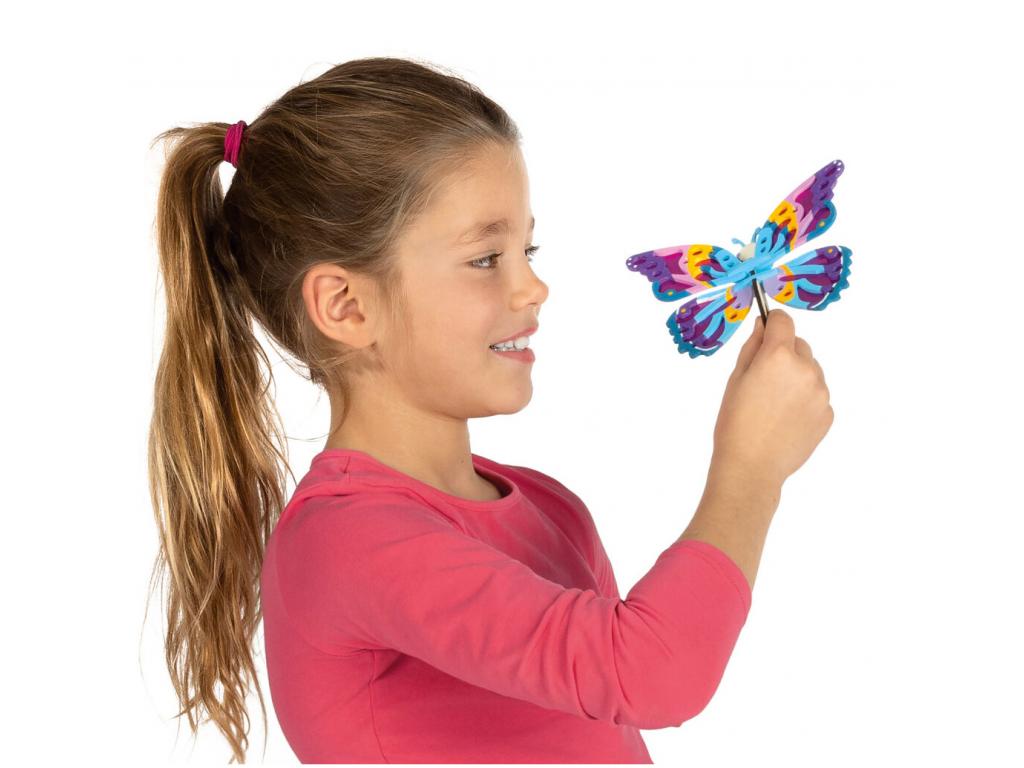 Ez a díszíthető fából készült pillangókészlet megdobogtatja a kis kézműves rajongók szívét. Egyszerűen lyukassza ki a fa részeket a falapokból, és ragassza össze őket a megfelelő sorrendben. Most fesse le a pillangót az ecsettel és az élénk színekkel, ahogy szeretné. Ezután a rózsaszín vagy türkiz pauszpapír adja a pillangószárnyak végső simítását. Ha a fából készült műalkotás tökéletes, akkor kis faállványán megcsodálhatjuk a gyönyörű pillangót. Az utasítások részletesen ismertetik az egyes lépéseket.