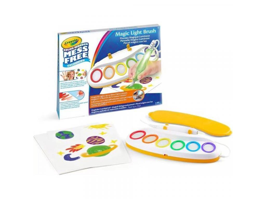 A Crayola Color Wonder Varázs festőkészlet világító ecsettel egy lenyűgöző, kreativitásra ösztönző játék, amely garantáltan elvarázsolja a gyerekeket! Ez a készlet különleges Color Wonder festékkel működik, amely csak a csomagban található speciális papírlapokon jelenik meg, így elkerülhető a maszatolás és a nem kívánt nyomok a bőrön, bútorokon és textíliákon. Így a gyerekek nyugodtan alkothatnak, anélkül, hogy bárhol rendetlenség lenne.