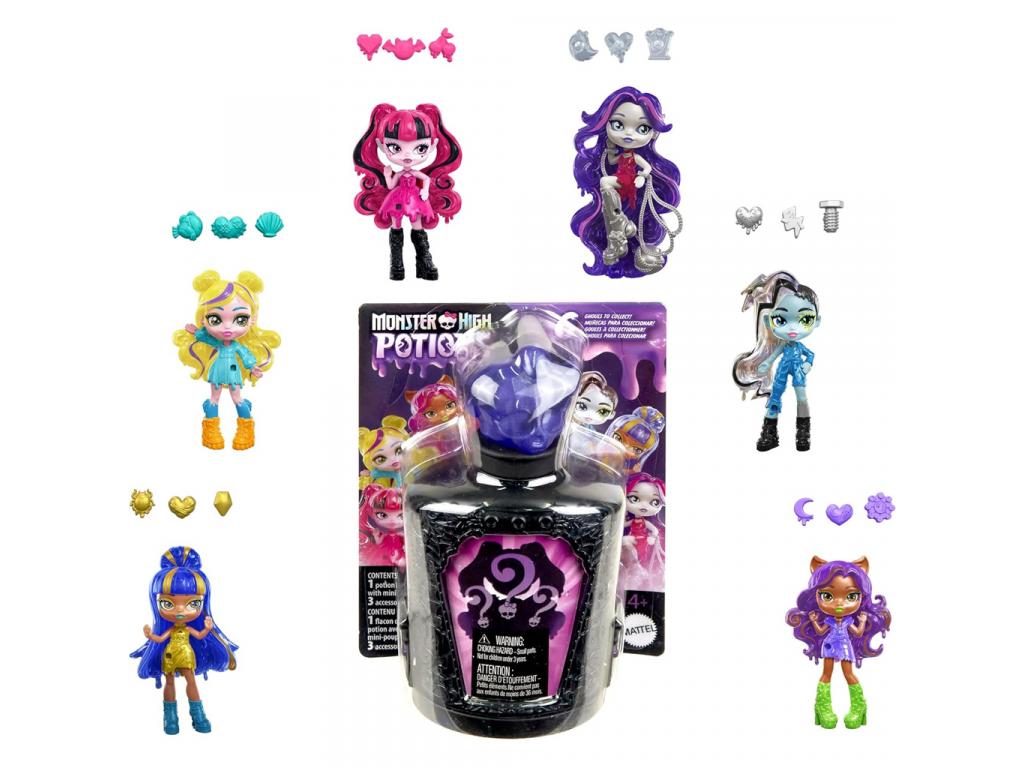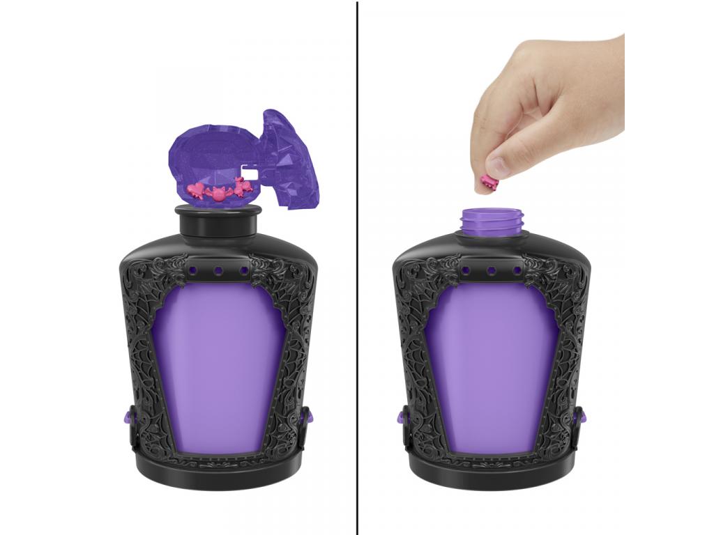 A játék megkezdéséhez tölts vizet az üvegbe, rázd meg, és figyeld, ahogy a lila folyadék elkezd áttetszővé válni, és felfedi a babát és kiegészítőit. Minden egyes üvegben egy véletlenszerűen kiválasztott Monster High karaktert találsz a híres szereplők közül, például Draculaurát vagy Frankie Steint. A karakterekhez tartozó mini kiegészítők mint ékszerek és hajdíszek még személyesebbé és izgalmasabbá teszik a felfedezést.
