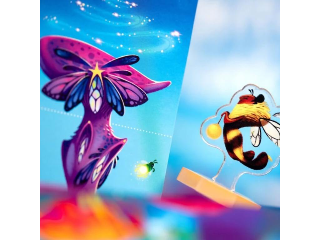 A Tündértánc társasjáték varázslatos élményt nyújt, ahol a játékosok egy gombafalut építenek az erdő mélyén, és tündéreikkel manát gyűjtenek. Ebben a könnyed kártyadraftolós játékban minden körben választott kártyákkal új gombákat növeszthetsz vagy a meglévőket fejlesztheted, hogy minél több manát termeljenek. A tündérek virágpor helyett itt gombáról gombára szállnak, és a termelt mana összegyűjtéséért versengenek, ami a pontgyűjtés kulcsa.