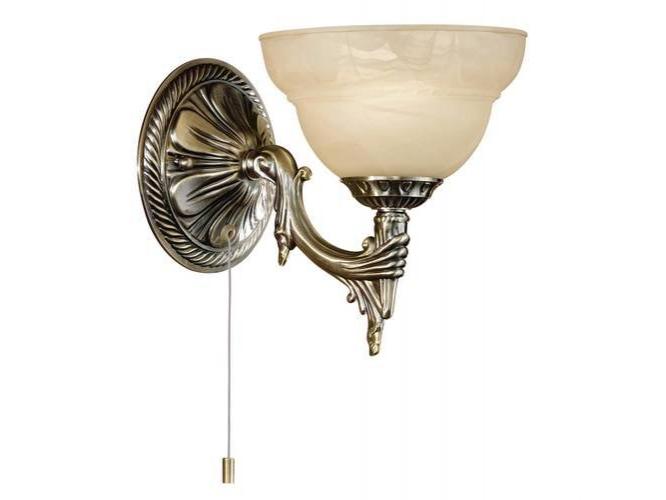 Ez a MARBELLA sorozatú fali lámpatest bronzozott öntöttfémből és pezsgőszínű alabástrom üvegből készült, és húzókapcsolóval működtethető. A reflektorhoz E14-es izzó szükséges.
