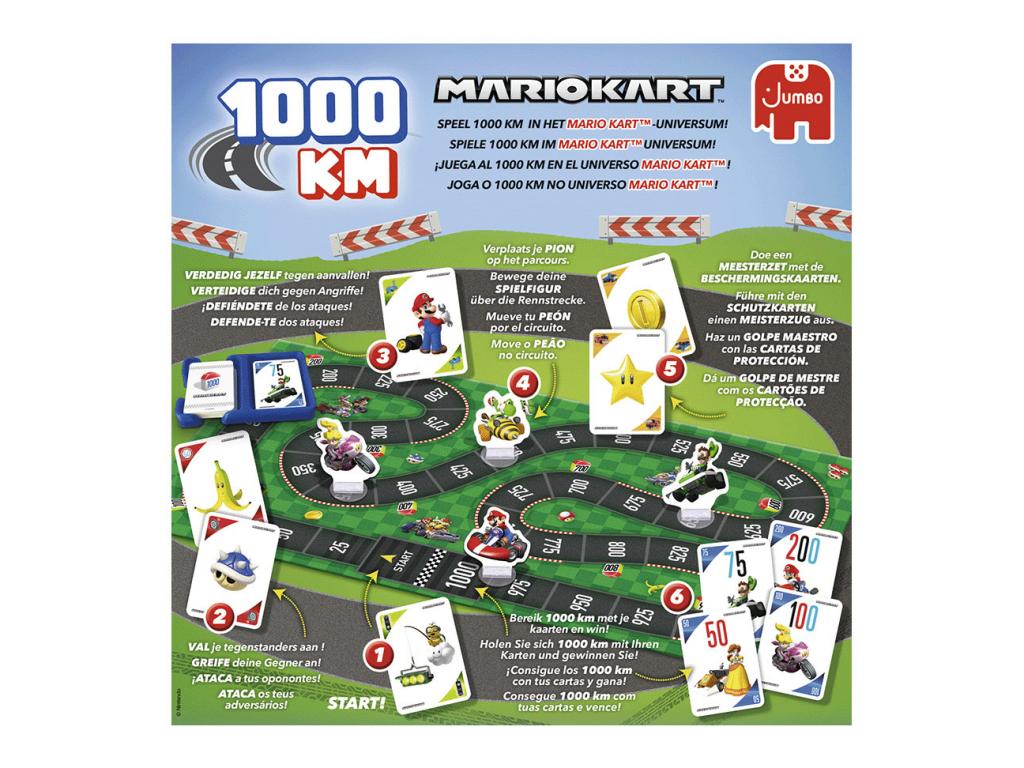 Játssz a híres 1000 km-es játékkal a Mario Kart világában. Válassz egyet kedvenc Mario Kart karaktereid közül, például Mariót, Luigit vagy Peachet, és kilométerkártyákkal versenyezz a pályán. De vigyázz a riválisok banánhéjaival és teknőseivel az út mentén! Vajon te érsz elsőként a célba?