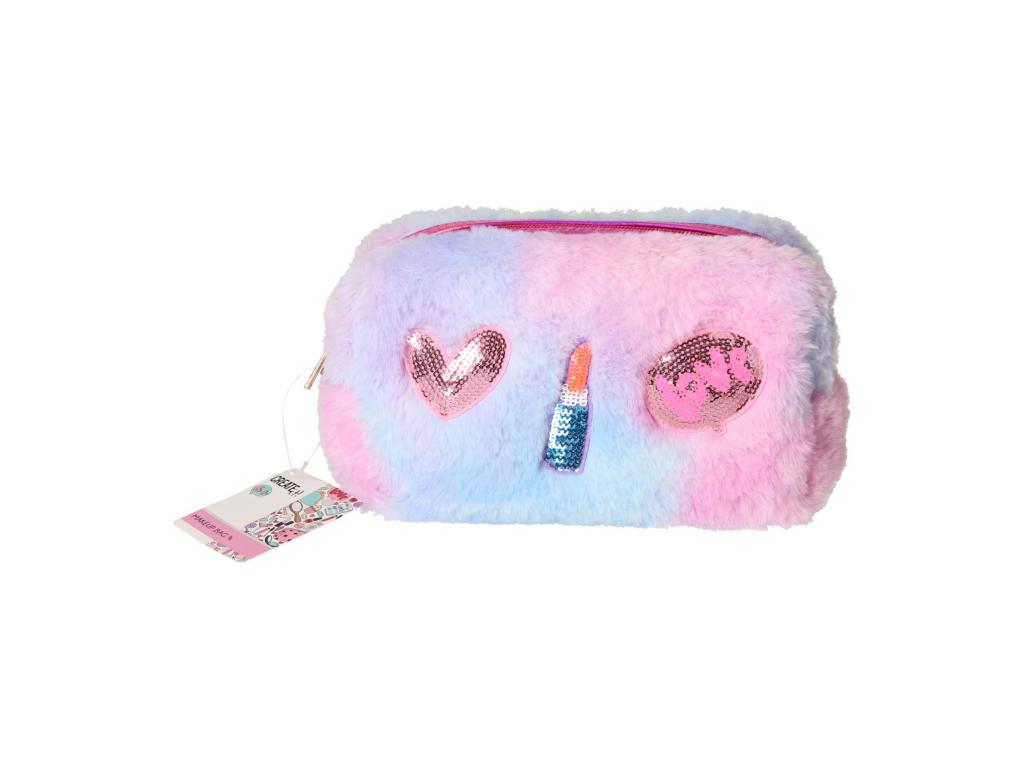 Tartsd rendezett formában a sminkedet a Create It! kozmetikai táskával Hairy! Ez az imádnivaló cipzáras táska puha, szőrös külsővel rendelkezik, varázslatos szivárványszínekben, és imádnivaló szív, rúzs és egy szerelmes emotikon motívumokkal díszített. Tökéletes méretben tárolhatod benne kedvenc sminkeszközeidet, akár otthon, akár útközben. Játékos és élénk dizájnjának köszönhetően nélkülözhetetlen kiegészítője a fiatal sminkrajongóknak, akik szeretnek merészek, bátrak és szórakoztatóak lenni. Tartsd biztonságban és stílusosan szépségápolási kellékeidet a Create It! kozmetikai táskával!