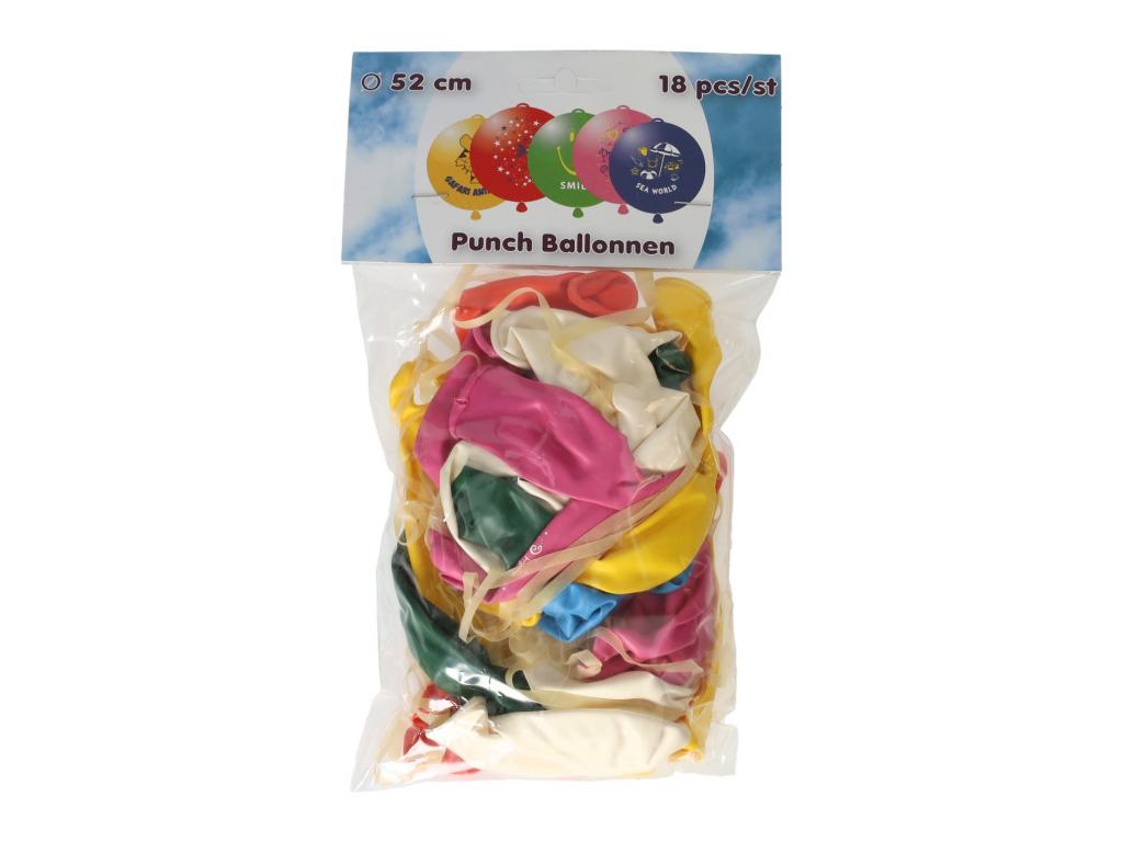 Színes lyukasztólufik nyomtatással. A léggömbök a gumiszalagnak köszönhetően ide-oda pattoghatnak. A csomag 18 darab 52 cm átmérőjű lufit tartalmaz. Nem alkalmas 3 év alatti gyermekek számára.