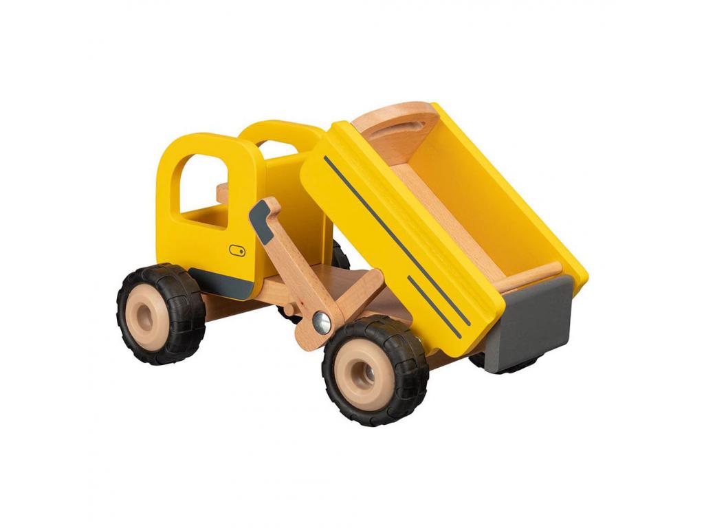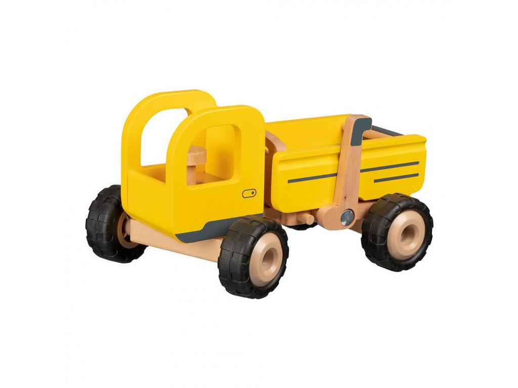 Ezzel a fából készült Goki dömperrel a gyerekek szórakozásán van a hangsúly. A kiváló minőségű gumiabroncsok a könnyű kormányozhatósággal és az egyszerű billenőfunkcióval párosulva teszik ezt a játékot a gyermekek kezében lévő robusztus építőjárművé. Tulajdonságok - Ajánlott életkor: 3+ - Anyag: fa - Méretek: 25 x 17 x 14,5 cm