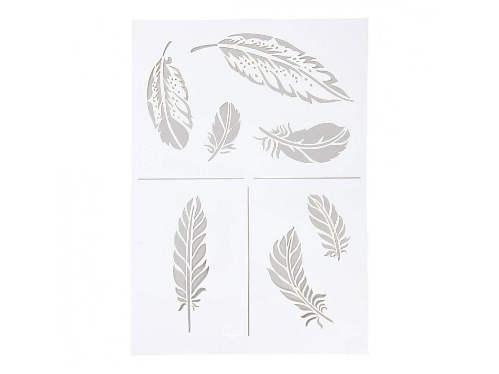 Műanyag sablon. Minden lap több motívumot tartalmaz, amelyek külön-külön is felhasználhatók. Használat után langyos vízzel mossa ki